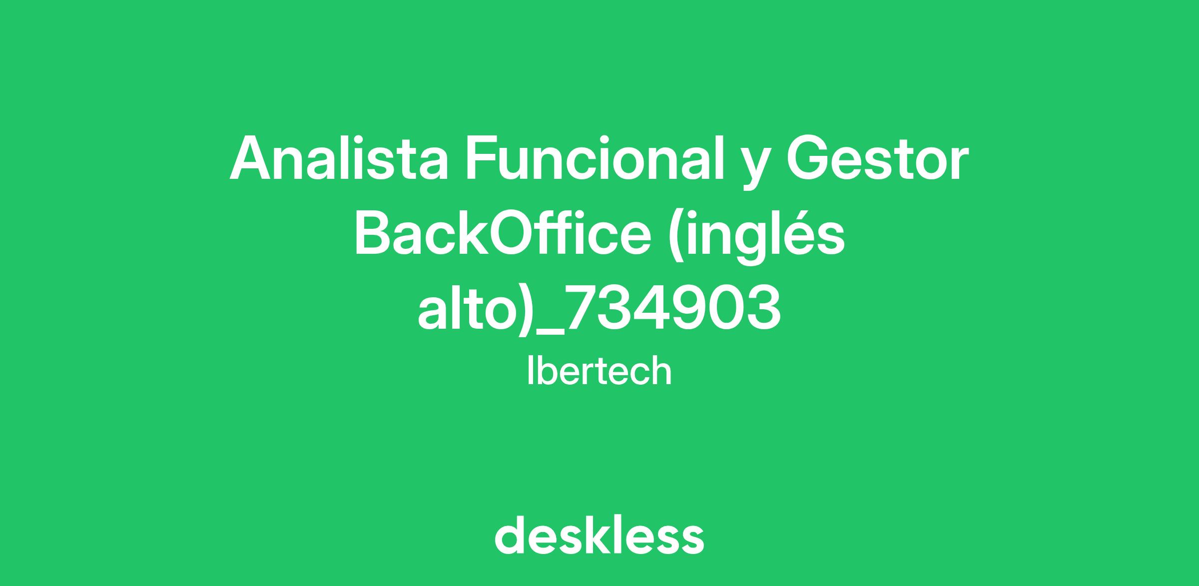 Desde Ibertech, expertos en selección de talento, buscamos un perfil Analista funcional y gestor de tareas para el sistema de BackOffice, con inglés alto.