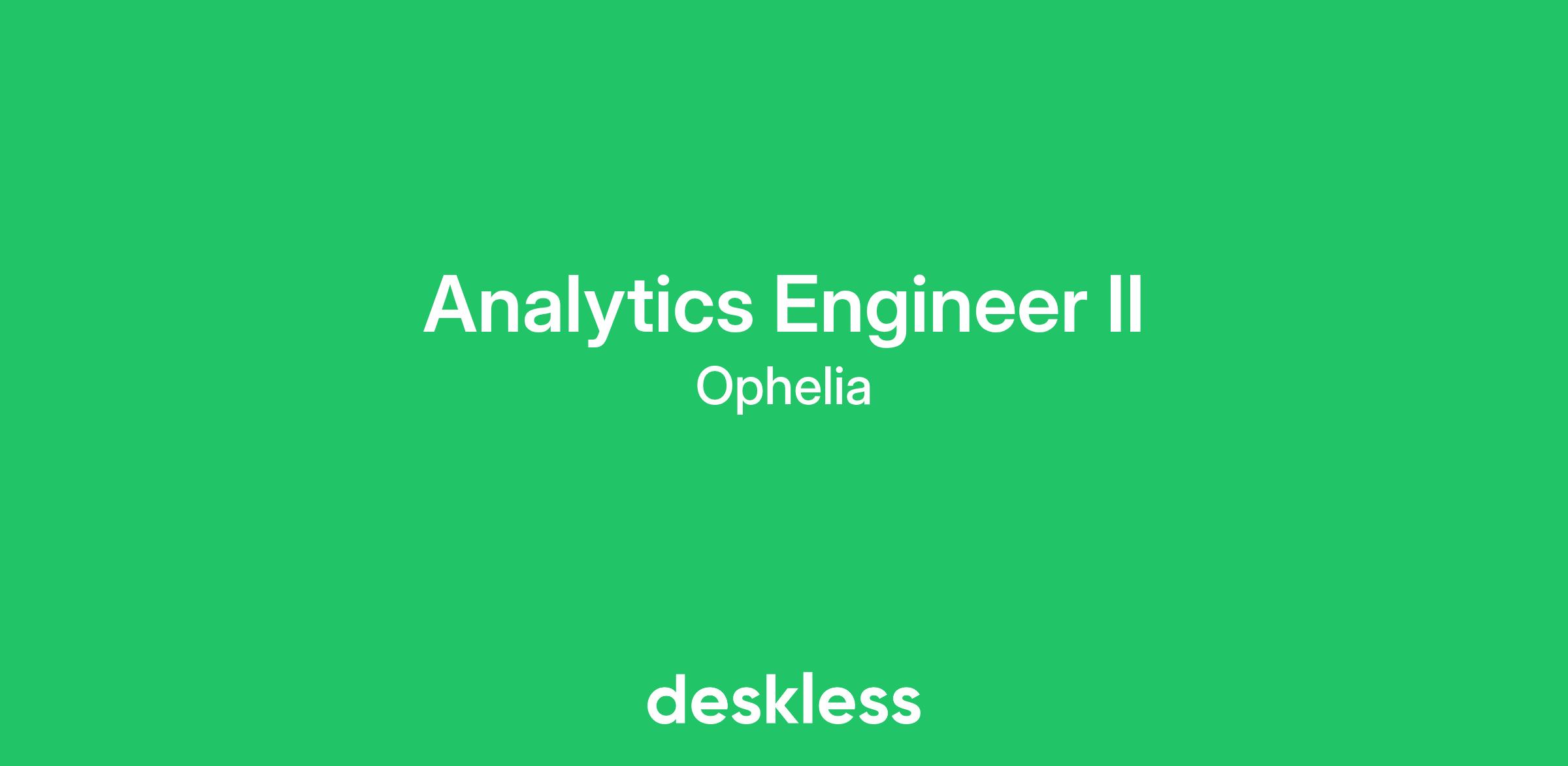 As an Analytics Engineer II at Ophelia, you'll be instrumental in developing and refining our data warehouse for analytics, reporting, and research. This involves constructing a resilient data pipeline with a scalable data model, integrating data from various sources such as electronic medical records (EMR), patient portal, finance systems, and published events and surfacing this data in an appropriate BI tool for end stakeholders.
