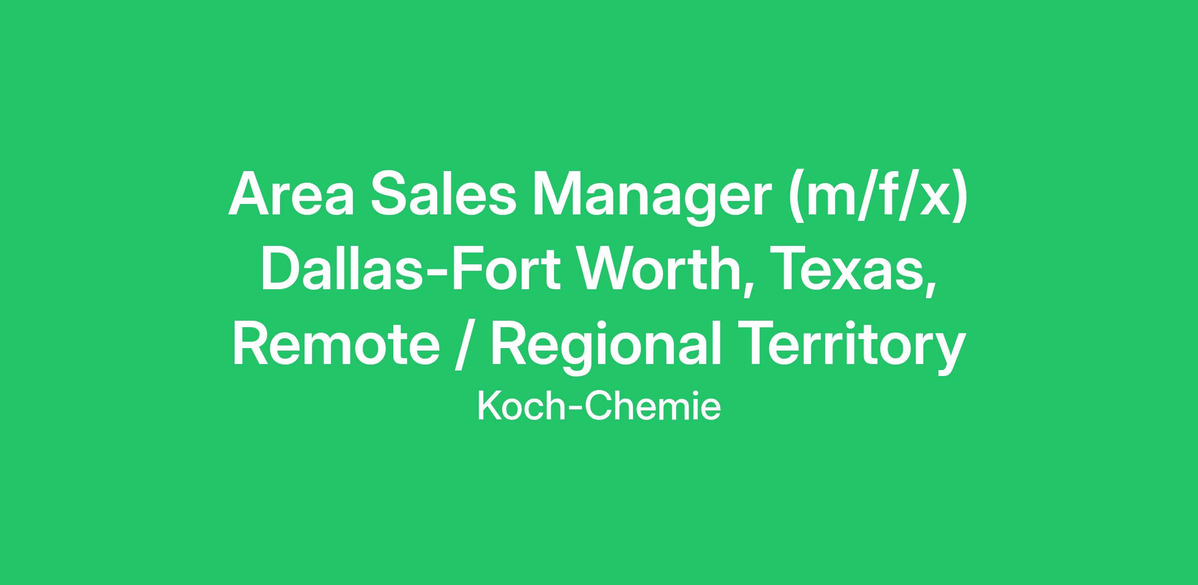 Area Sales Manager (m/f/x) Dallas-Fort Worth, Texas, Remote / Regional Territory