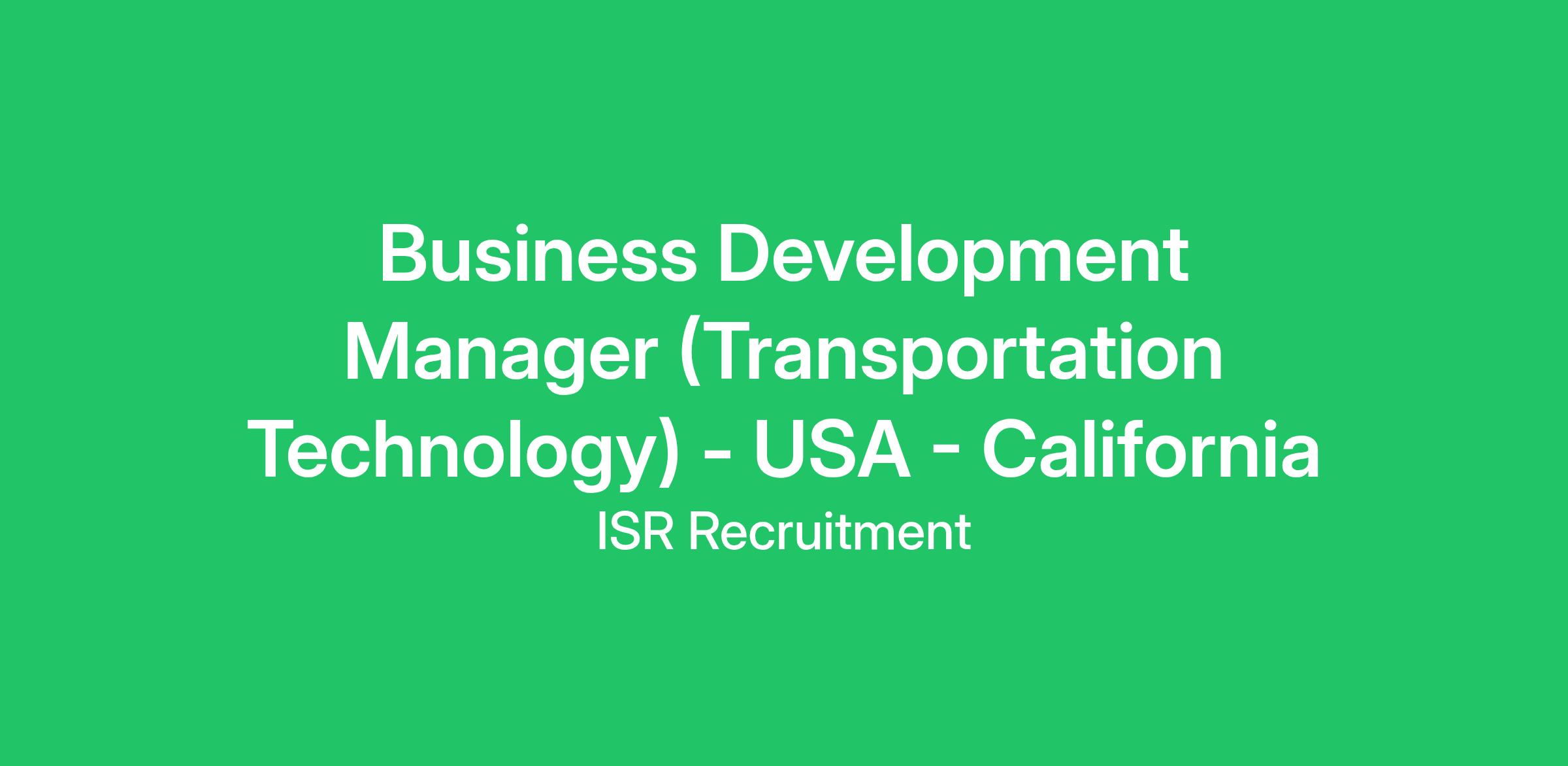 To learn more about our client and this opportunity working as a Business Development Manager based out of California working at the heart of the transport technology transformation both in the USA and globally; please call James Sample on +1 (813) 252-1508 or please send your CV (james@isr.uk.com) for more information.