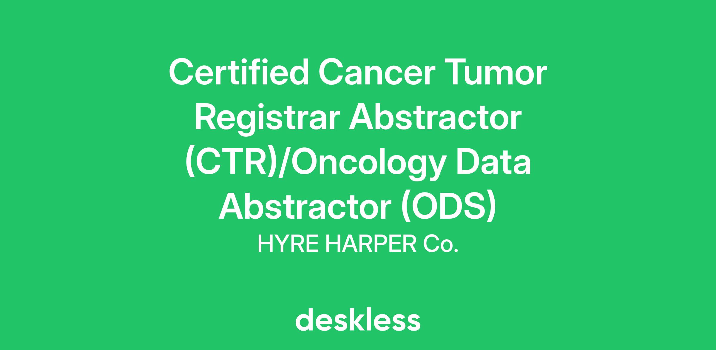 HYRE HARPER Co., a Service‑Disabled Veteran‑Owned Small Business (SDVOSB), is seeking Certified Tumor Registrars (CTR) to support the Department of Veterans Affairs (VA) Cancer Registry Program. This role ensures accurate, timely, and complete oncology data abstraction in compliance with CoC, NAACCR, SEER, NPCR, AJCC (8th ed.), ICD‑O‑3, and Solid Tumor Rules.