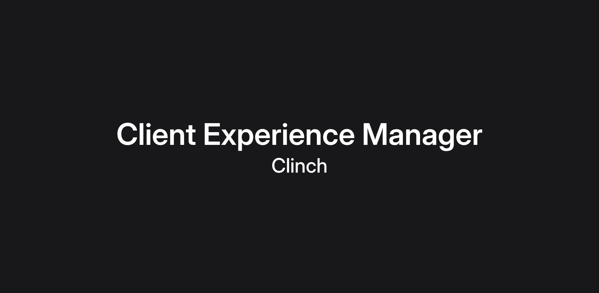 - Cultivate a client experience mindset, understanding what it means for a client to be successful and guiding both the Clinch team and clients toward achieving success.