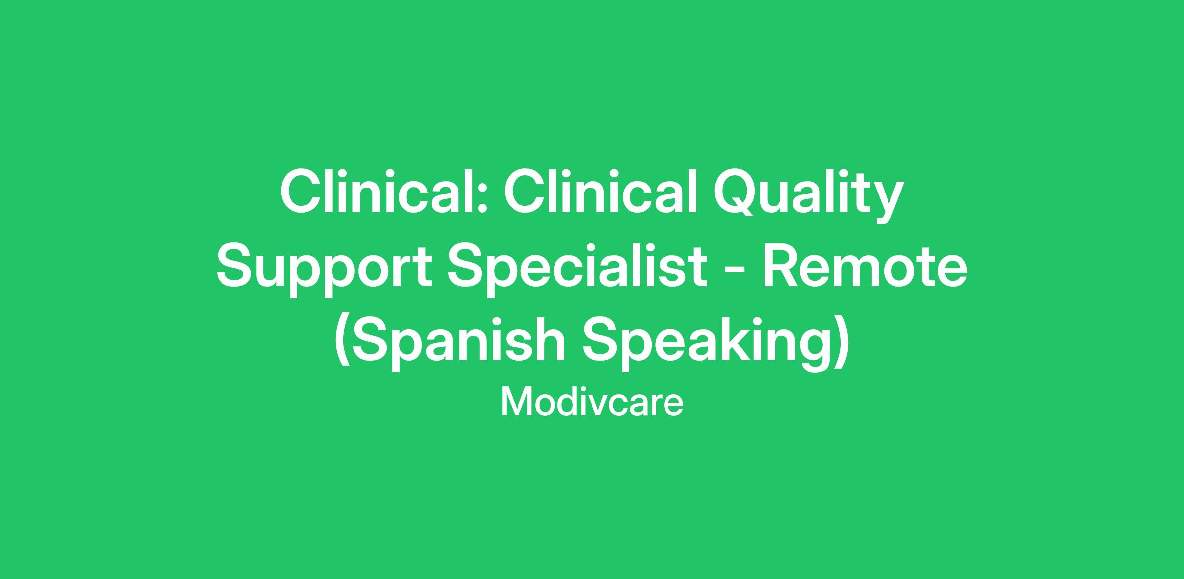 Clinical: Clinical Quality Support Specialist - Remote (Spanish Speaking)