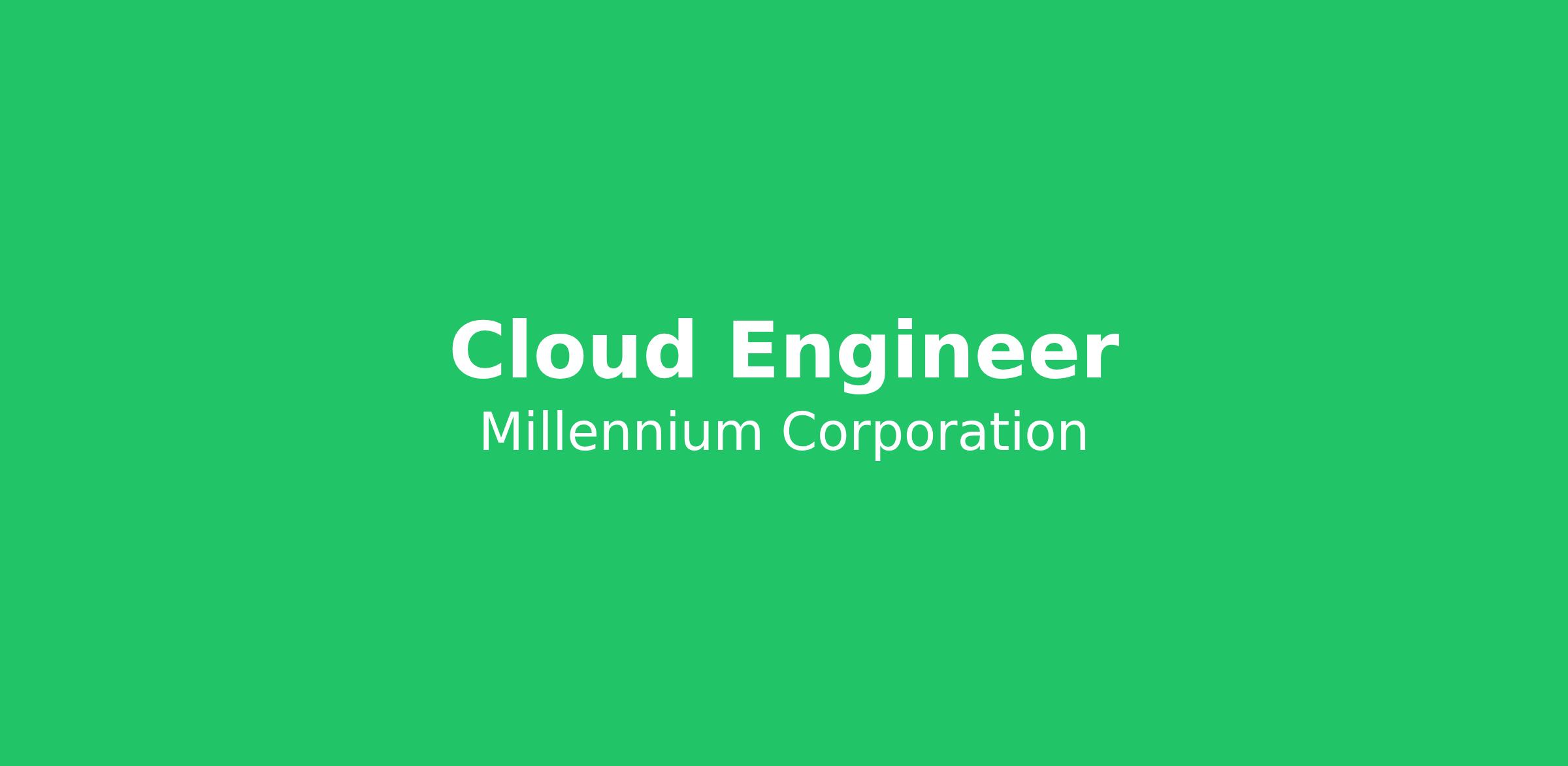 Millennium Corporation is hiring a hiring a Cloud Engineer to join us for a REMOTE position. An active Top Secret (TS) clearance is required to qualify for consideration.