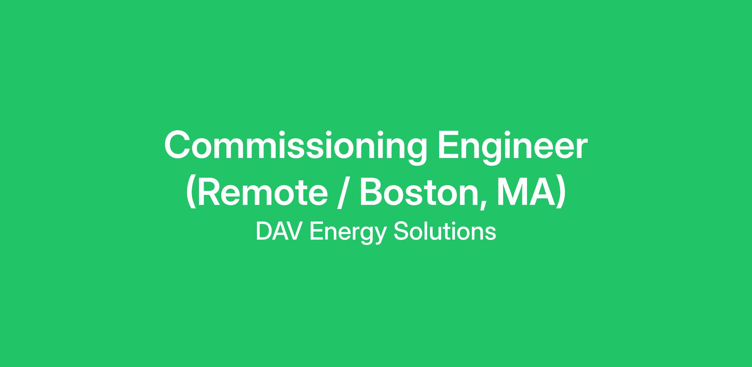 Commissioning Engineer (Remote / Boston, MA)