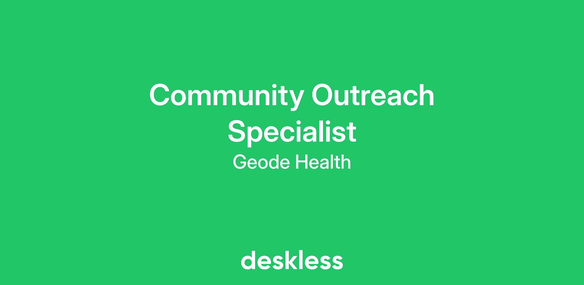 We are seeking a talented and experienced individual to join our growing team as our Community Outreach Specialist, developing and setting the pace for referral growth at Geode Health.