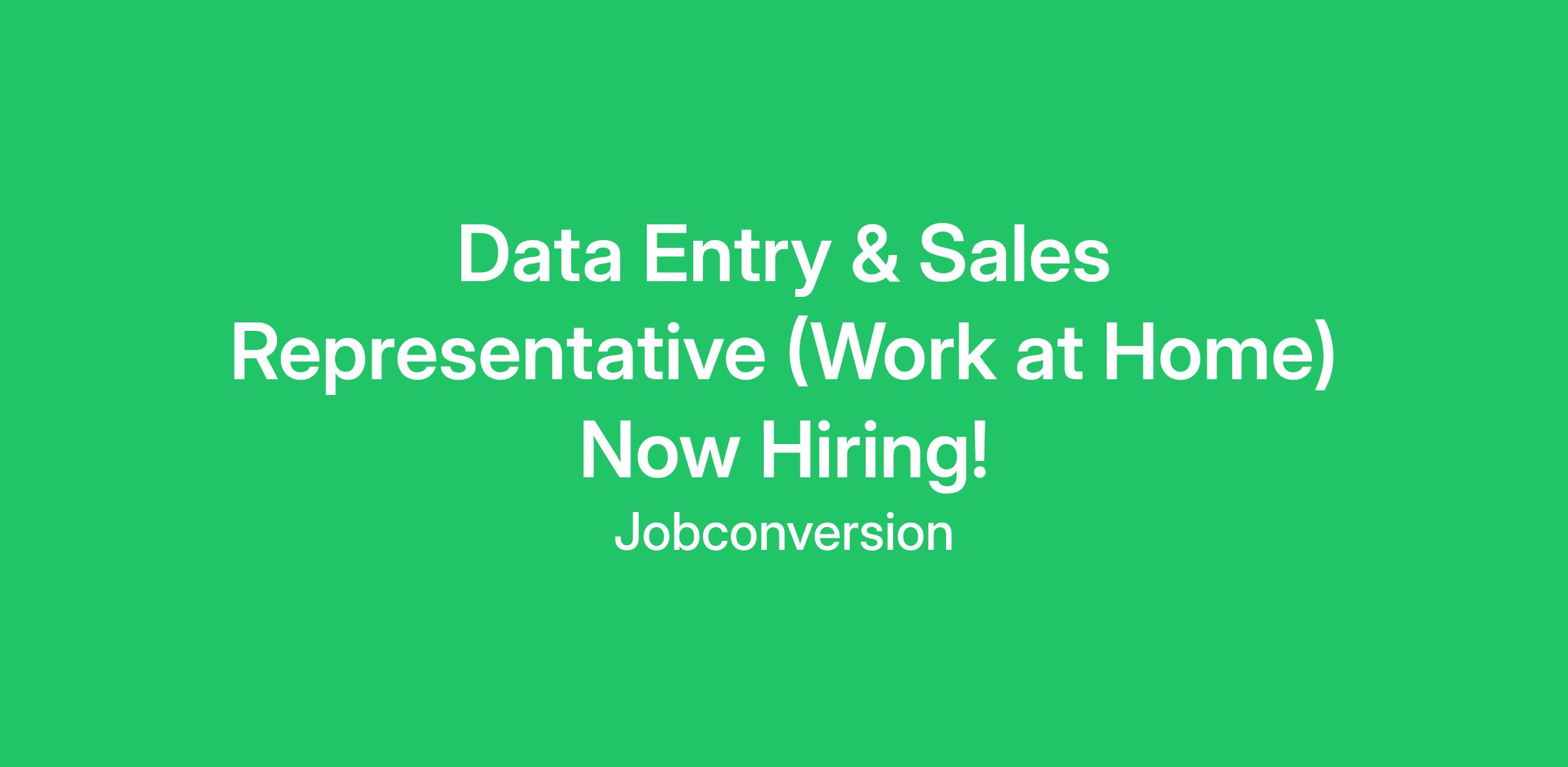 Data Entry & Sales Representative (Work at Home) Now Hiring!