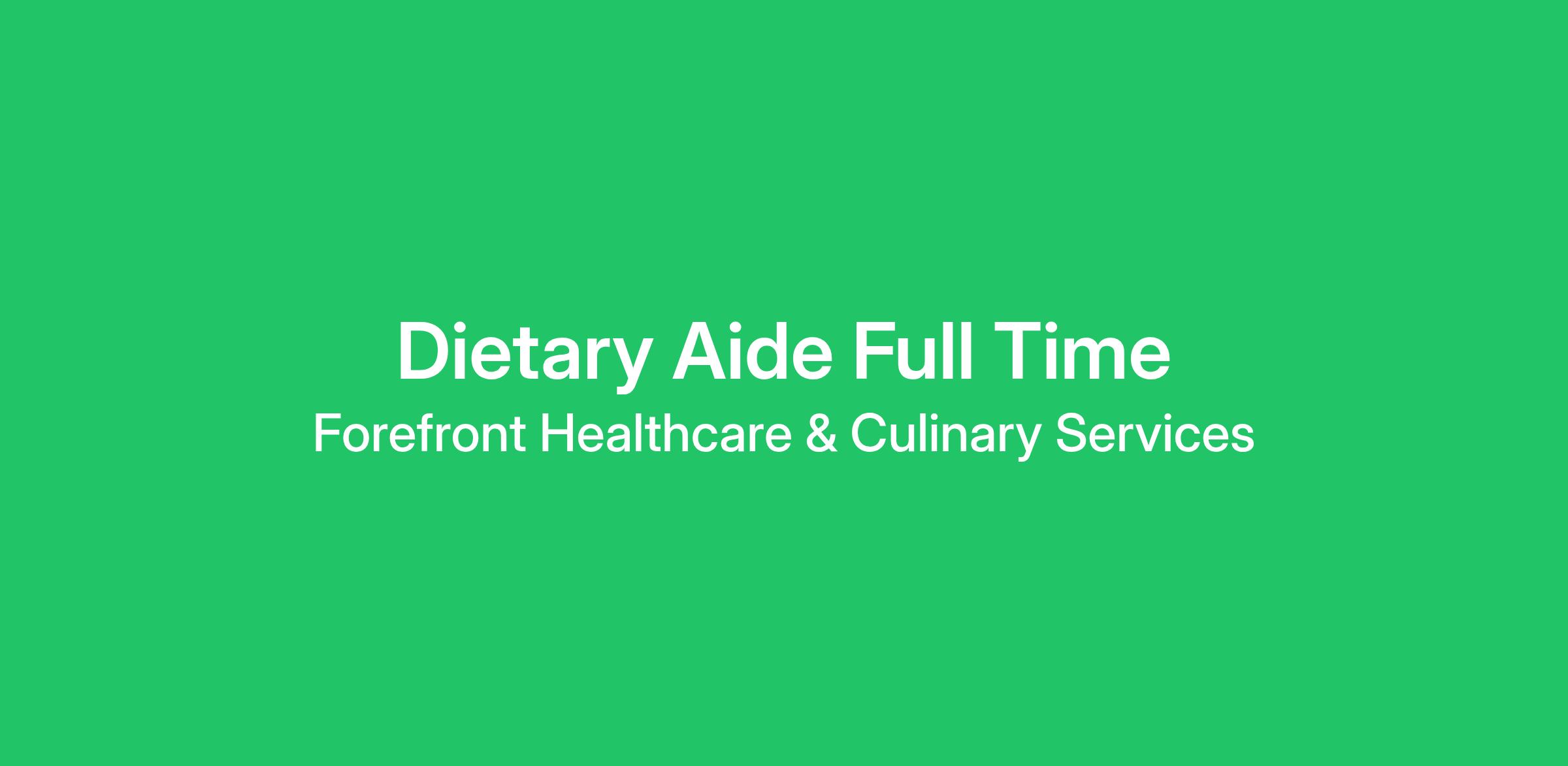 Forefront Healthcare is hiring a Full-time Dietary Aides
