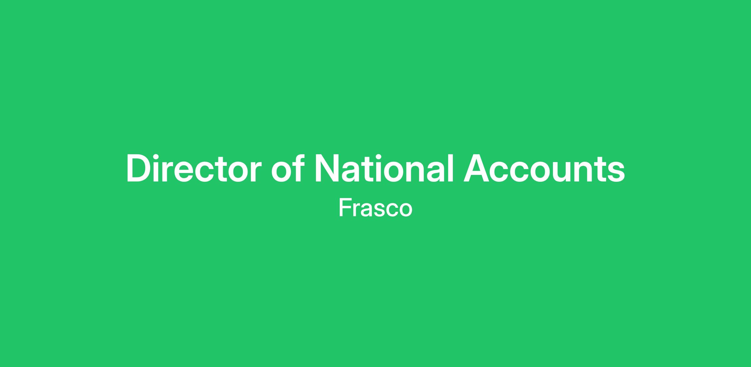 The Director of National Accounts is accountable for the achievement of new business sales growth through the execution of the overall strategies and tactics contained within Frasco’s National Sales Program. More specifically, to seek, qualify, and expand higher volume opportunities, toward a successful execution via various techniques, strategies, and business model partnerships.