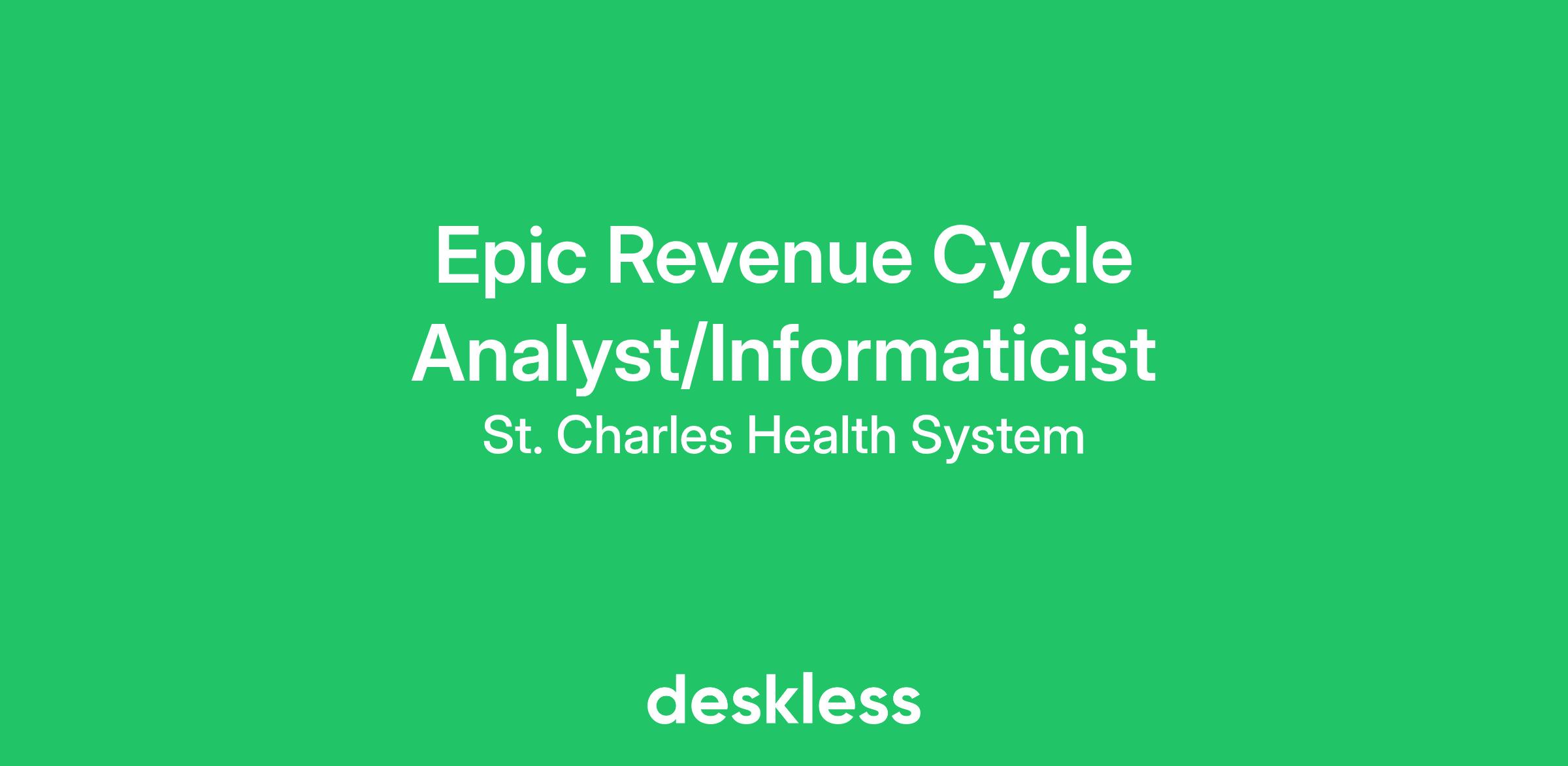 Required: Epic certification in one (1) Revenue Cycle application. Must complete Epic certification training if not already Epic certified in the most recent version of the Epic EHR product. This will require overnight travel. Must pass Epic certification exam within 3 months of completing Epic certification training courses. Ability to meet St. Charles Health System driving requirements. Ability to travel to business functions/trainings/meetings and all St. Charles Health System worksites.