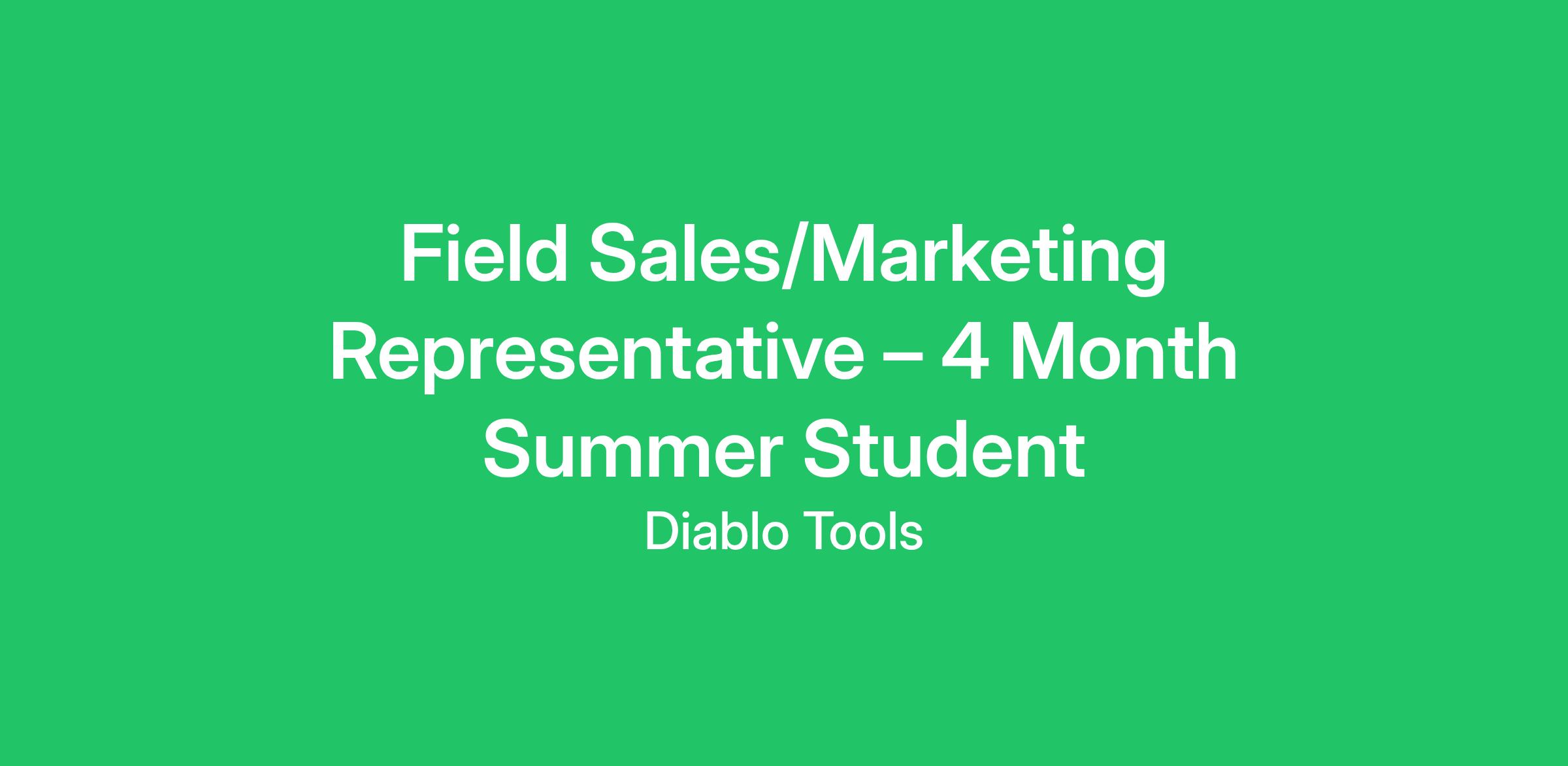 Diablo is seeking strong work ethic, self-motivated, undergraduates for Field Sales/Marketing Representatives. Individual will be responsible for driving sales of Diablo products through product demonstrations, end-user interaction and in-store merchandising at key accounts. The position will report directly to an Account Manager and will have responsibility for an assigned geographical territory.