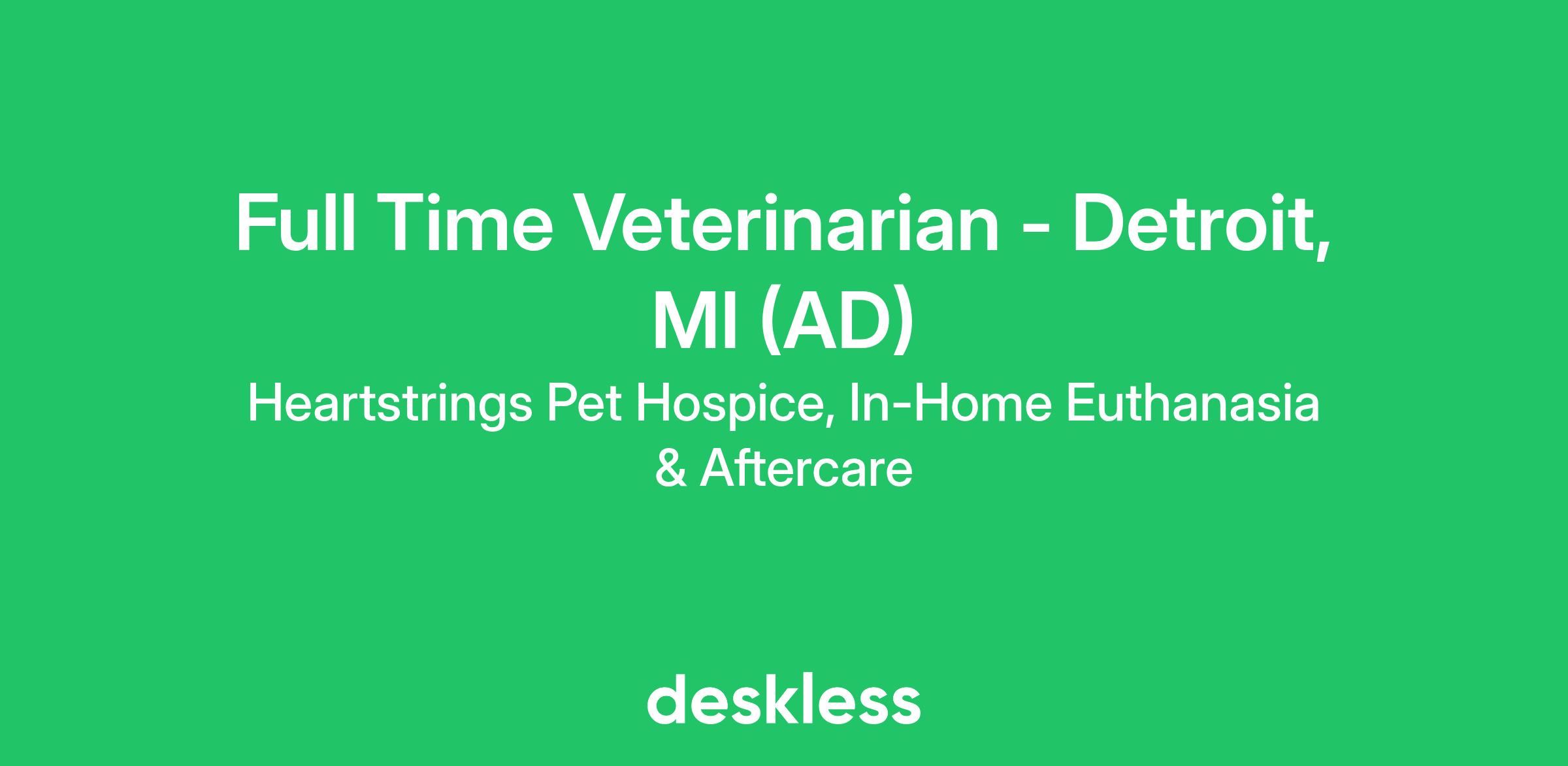Experience Fulfillment at Heartstrings Pet Hospice! Join Our Team as an In-Home Veterinarian in Detroit..