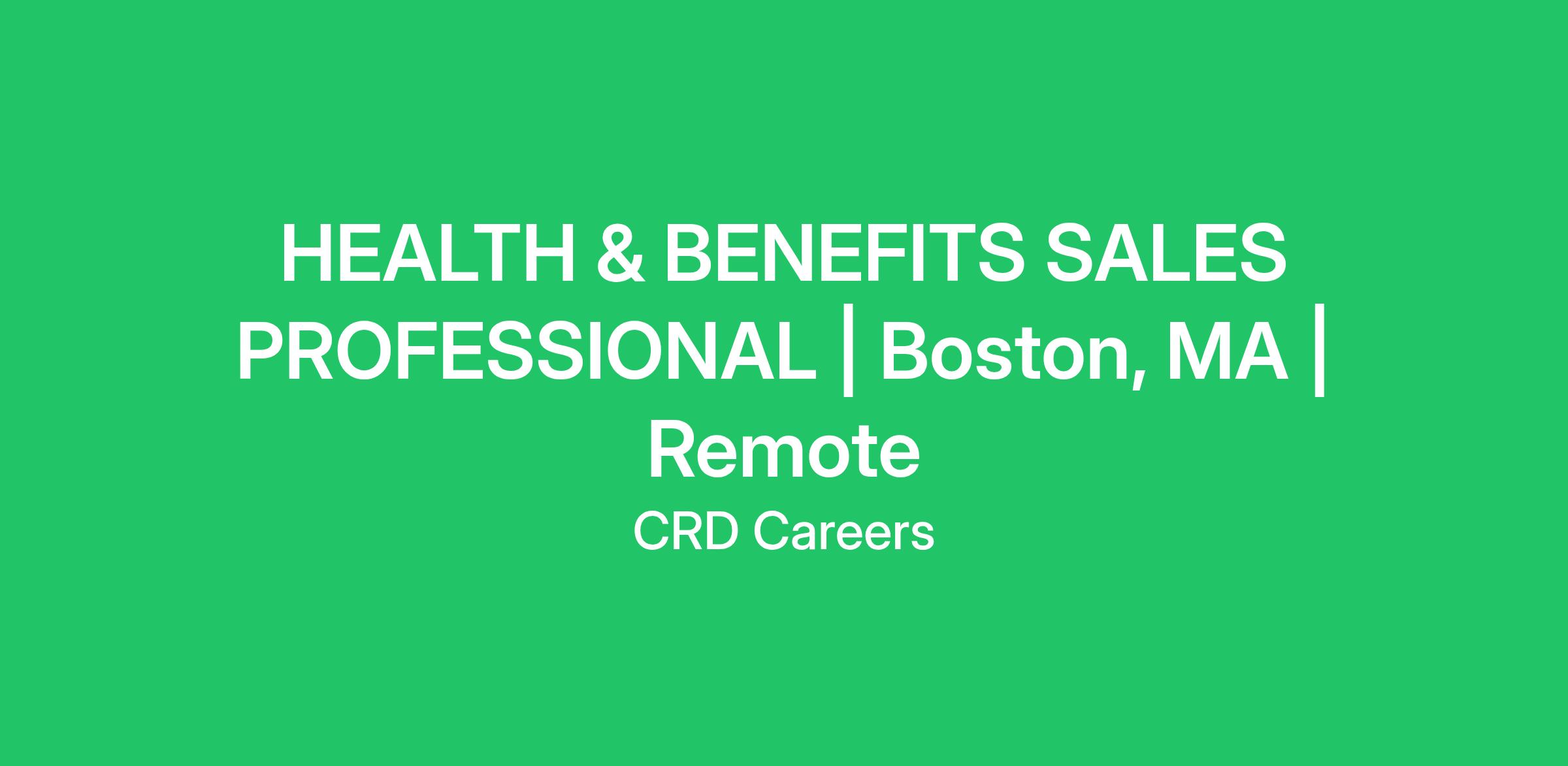 HEALTH & BENEFITS SALES PROFESSIONAL | Boston, MA | Remote