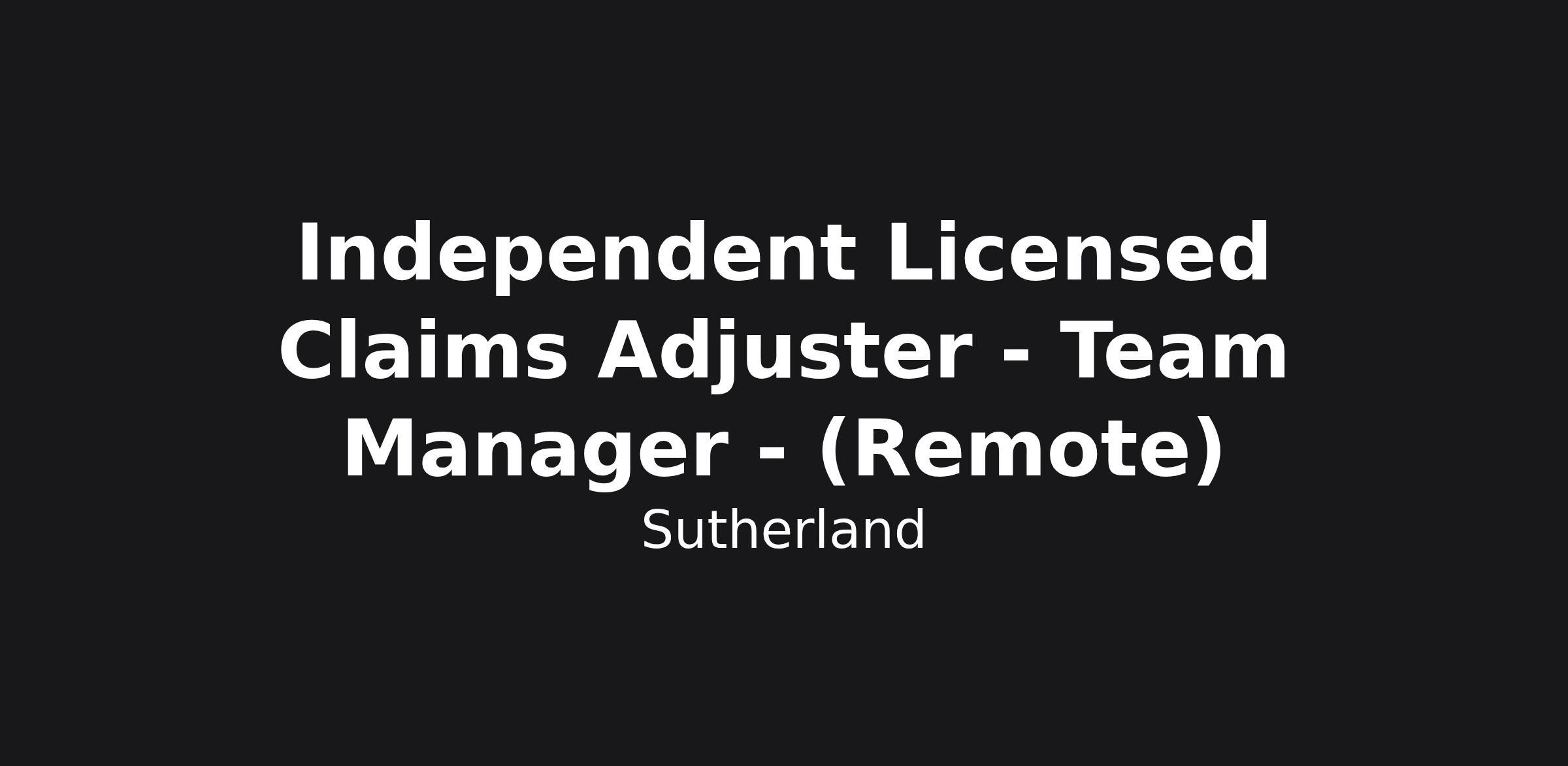 Sutherland is looking to add an Independent Licensed Claims Adjuster - Team Manager - (Remote) - to our team. If you feel you're ready for the next step in your career, and have passion for coaching & mentoring others, we want to hear from you!