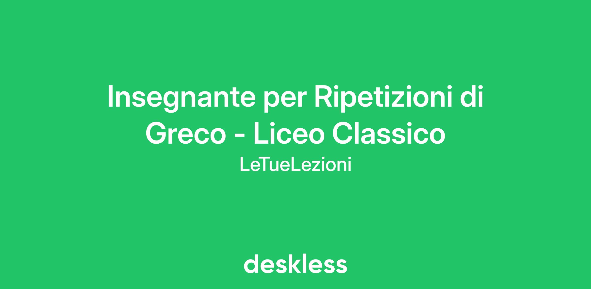 Vuoi aiutare uno studente a raggiungere i suoi obiettivi? Accetta la sfida e candidati subito a questa offerta! Letuelezioni è alla ricerca di insegnanti/formatori/docenti di Greco.