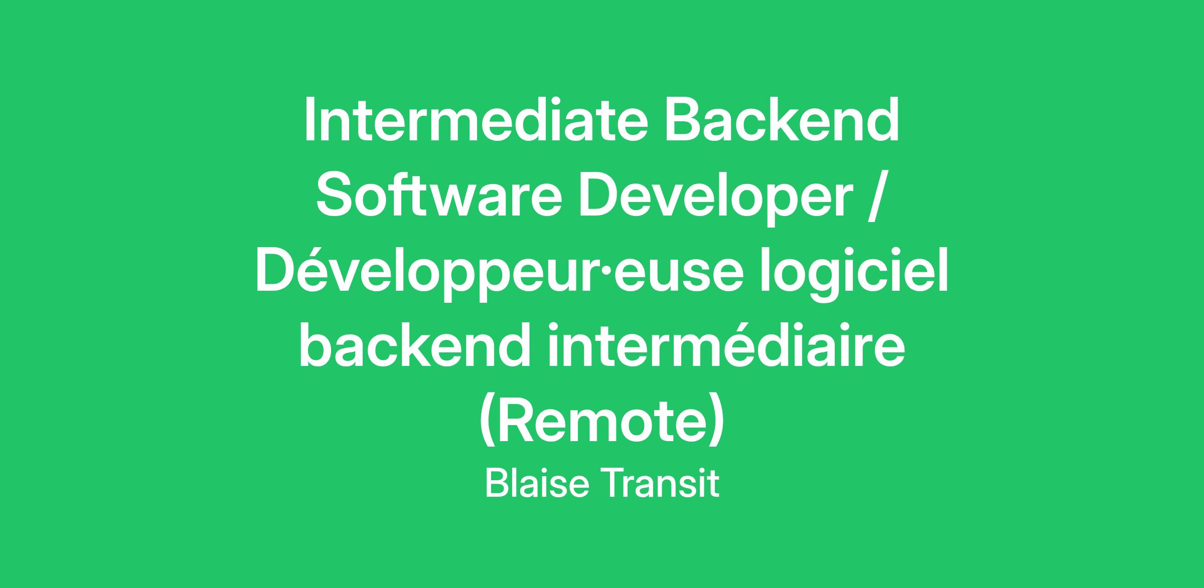 Job Title: Intermediate Backend Software Developer