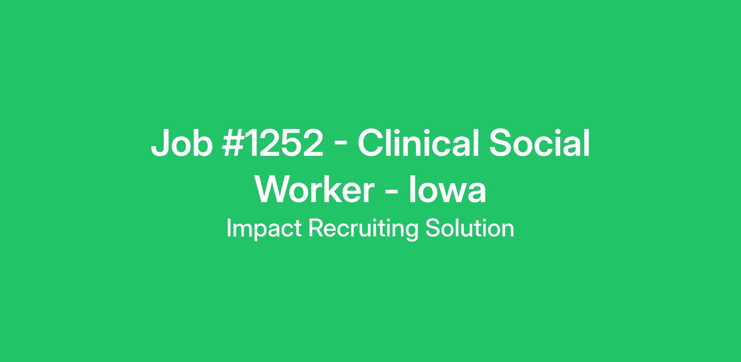 JOB TITLE (#1252): Clinical Social Worker Health Care Facility Surveyor - Iowa