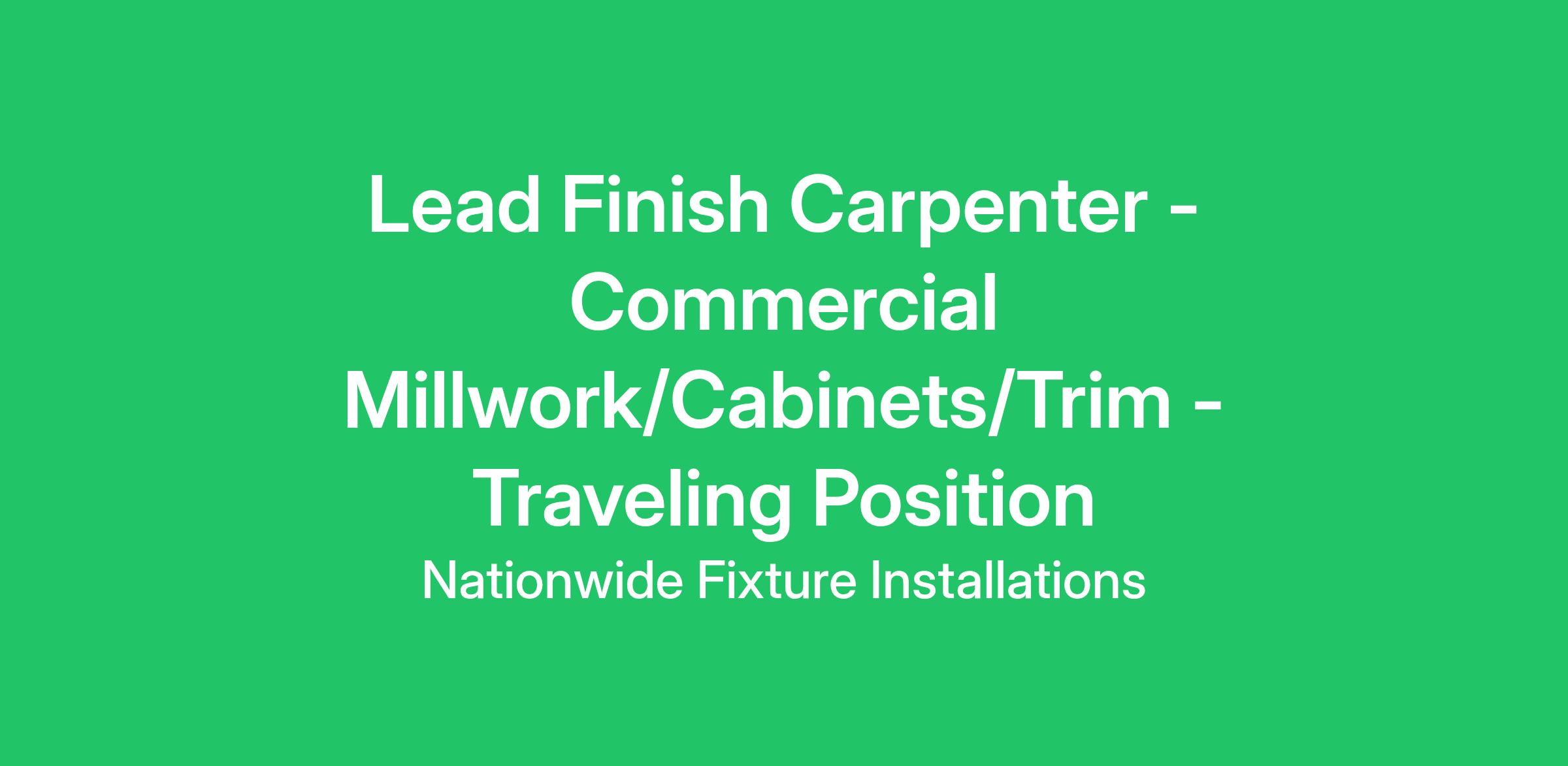 Specialty Millwork and Fixture Installation Contractor seeking Career Minded Lead Finish Carpenters who can perform in a diverse range of situations overseeing and installing cabinets, casework, wall panels, column wraps, millwork and standing and running trim in commercial and retail environments.