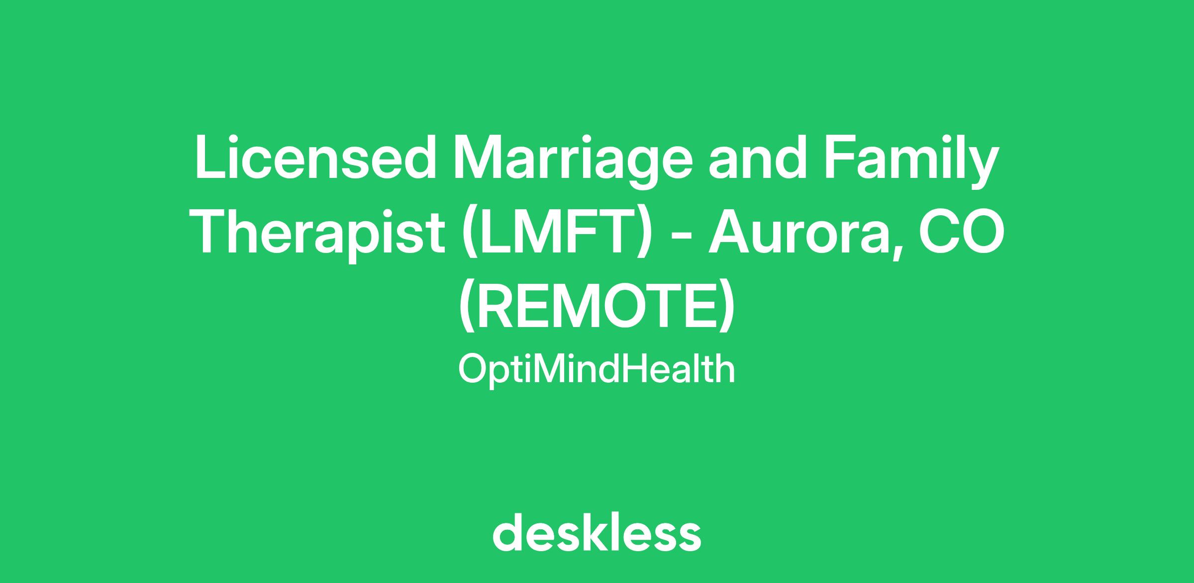 Licensed Marriage and Family Therapist (LMFT) $62K-80K/yr