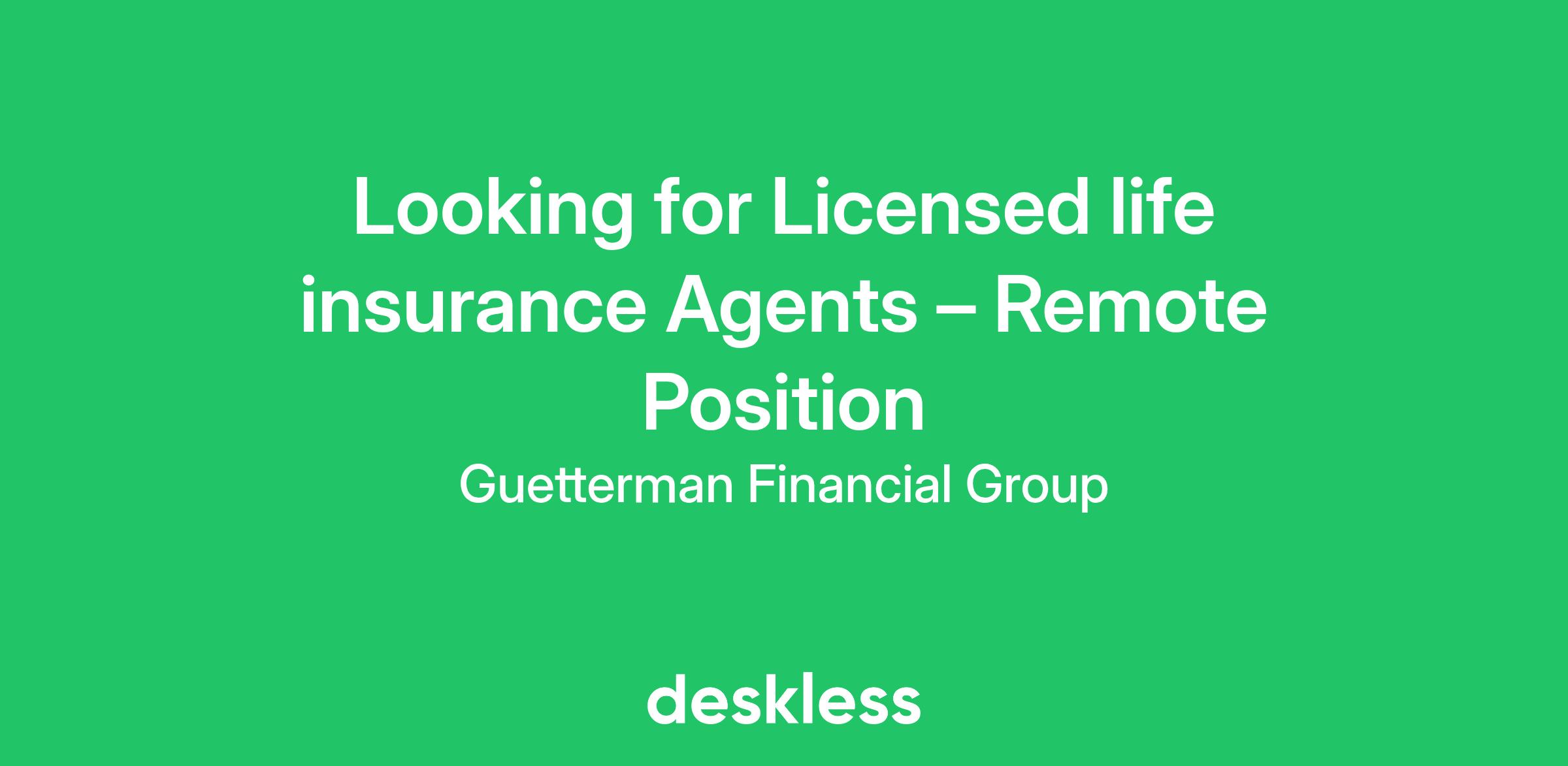 Qualifications: - Licensed Life Insurance or Health Agents or TOP sales rep or willing to become Licensed.