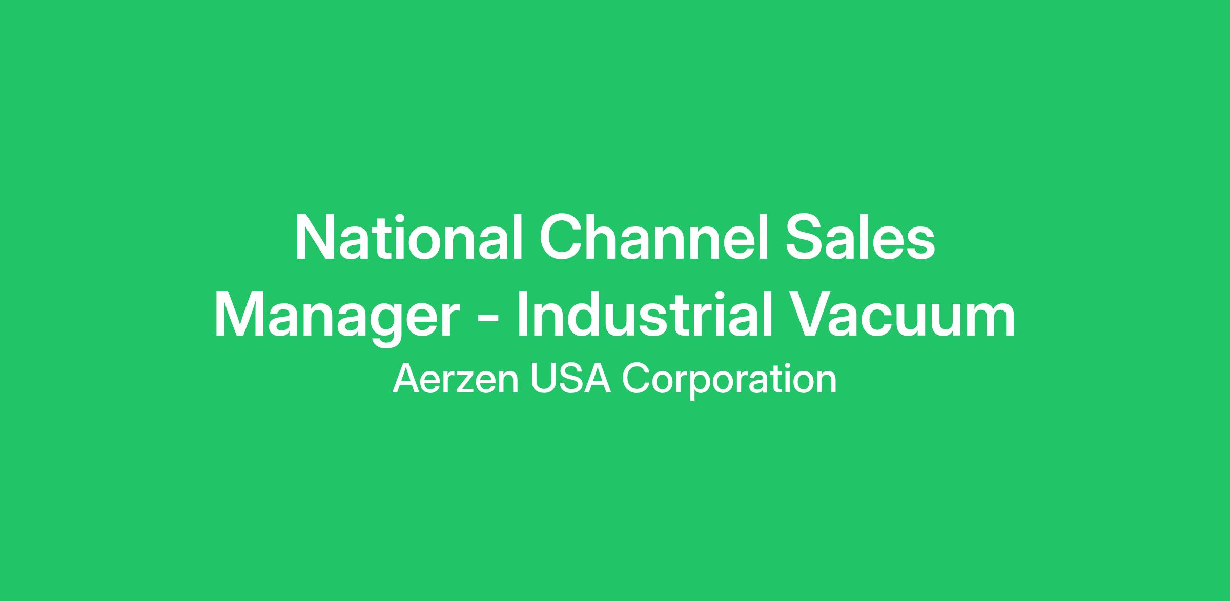 National Channel Sales Manager - Industrial Vacuum
