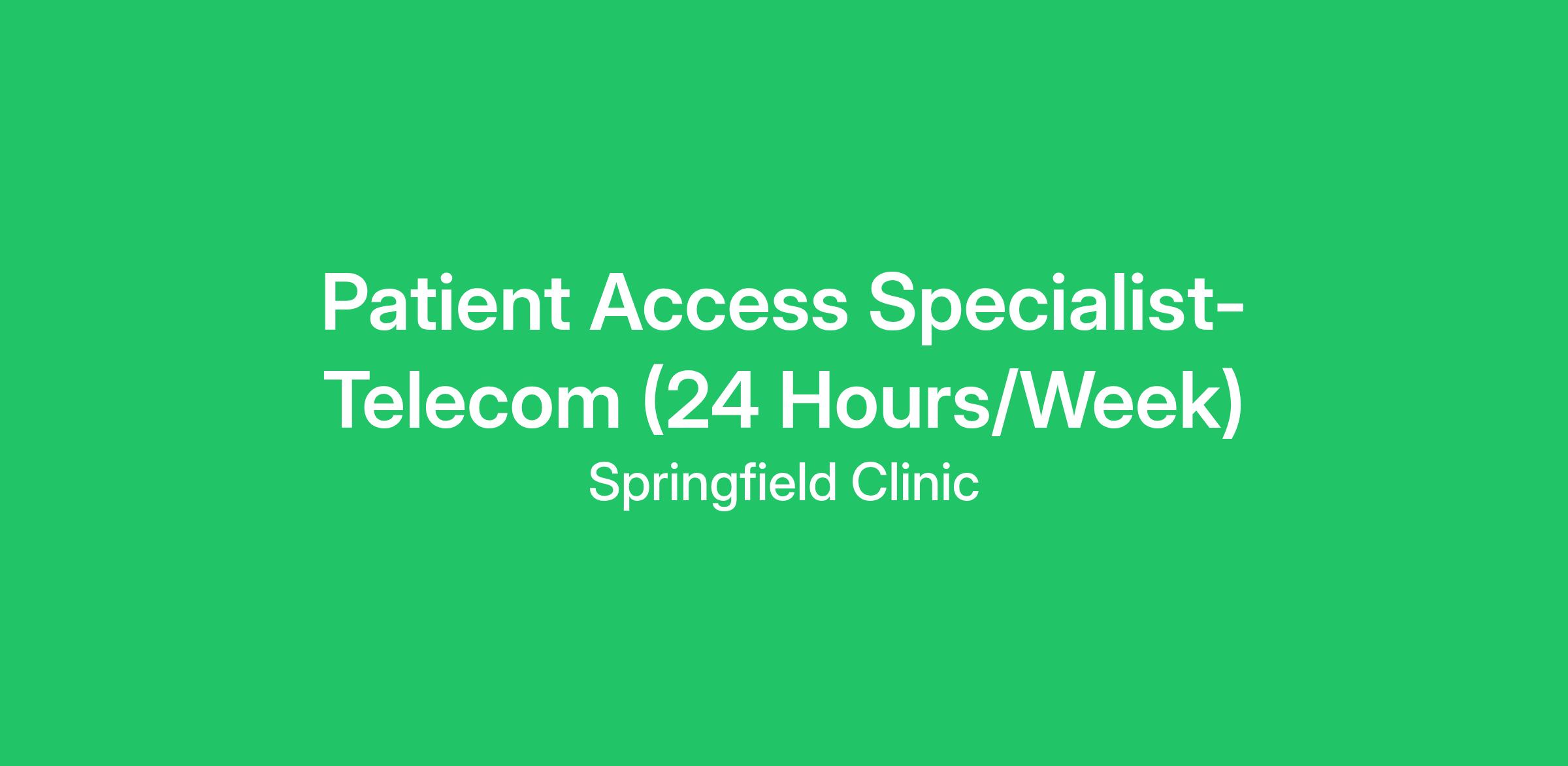 The Patient Access Specialist – Telecom is responsible for facilitating patient access services by managing incoming calls, assisting clinic customers at first point of contact and streamlining clinic-wide communications.