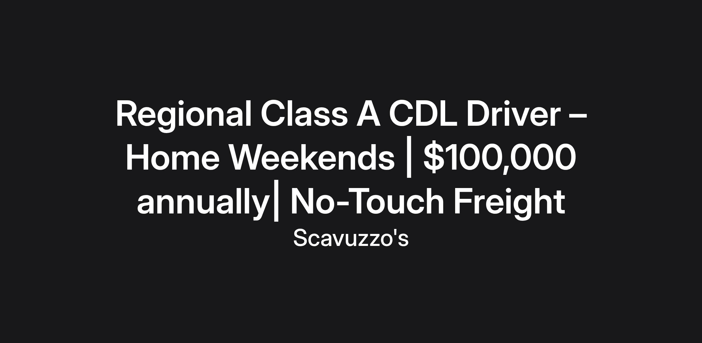 Scavuzzo’s Inc., a well-established, family-owned company, is hiring Regional Class A CDL Drivers. If you’re looking for consistent miles, strong weekly pay, and guaranteed weekends at home, we’d love to talk with you.