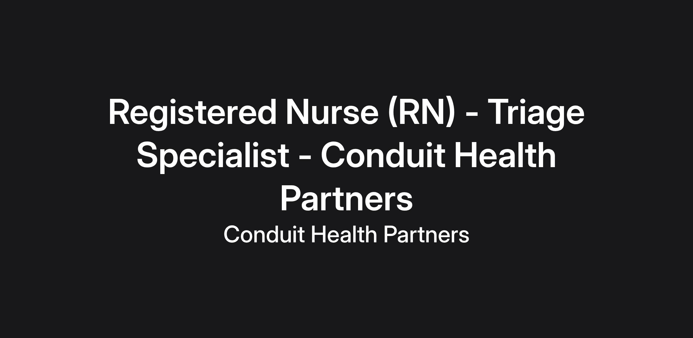 Conduit Health Partners is an equal opportunity employer.