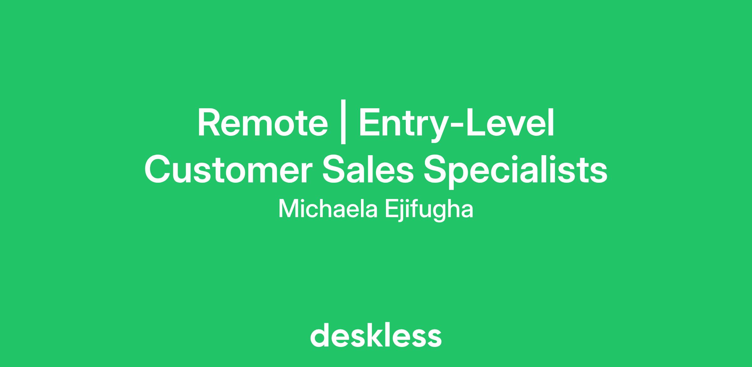 Remote | Entry-Level Customer Sales Specialists