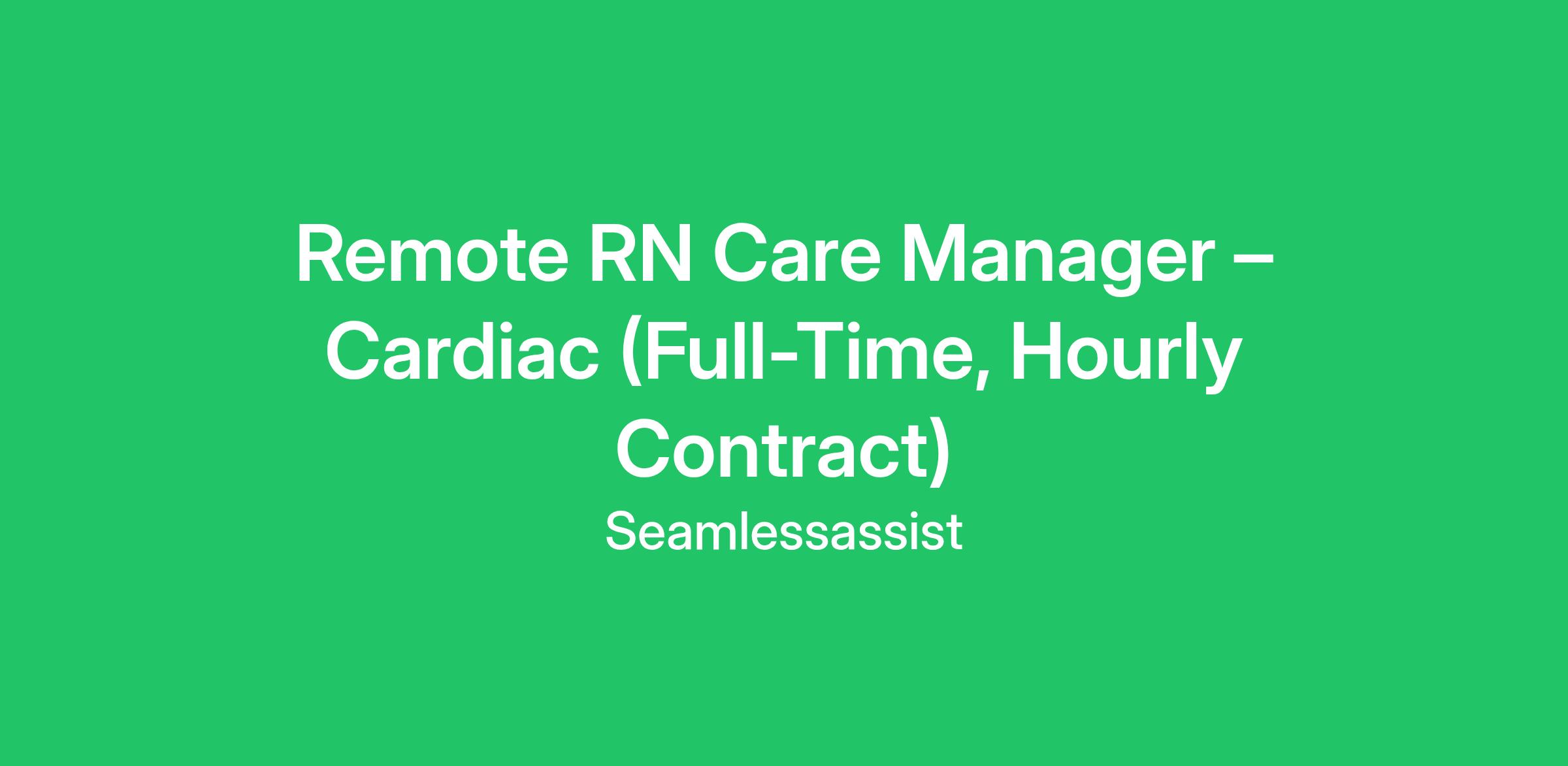 CCA is seeking experienced Registered Nurse (RN) Care Managers to support a high-acuity population of patients with complex cardiac conditions, including congestive heart failure (CHF) and other comorbidities. This is a full-time, remote, hourly contract position focused on delivering advanced clinical support through clinical triage, care plan development, and high-risk care management, including Transitional Care Management (TCM), Principal Care Management (PCM), Complex Care Management (CCM), Remote Patient Monitoring (RPM), and other applicable clinical programs.