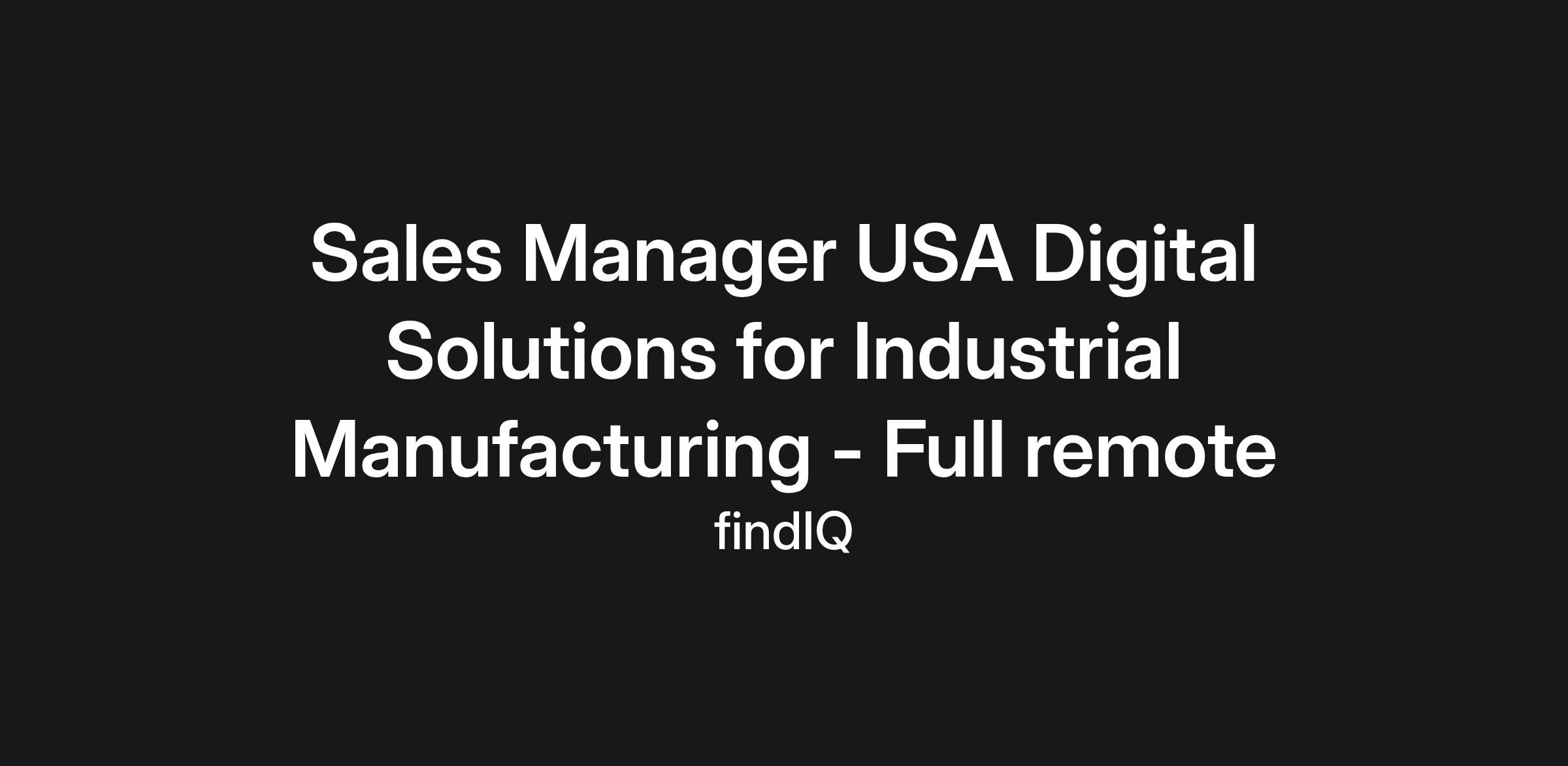 Sales Manager USA Digital Solutions for Industrial Manufacturing - Full remote