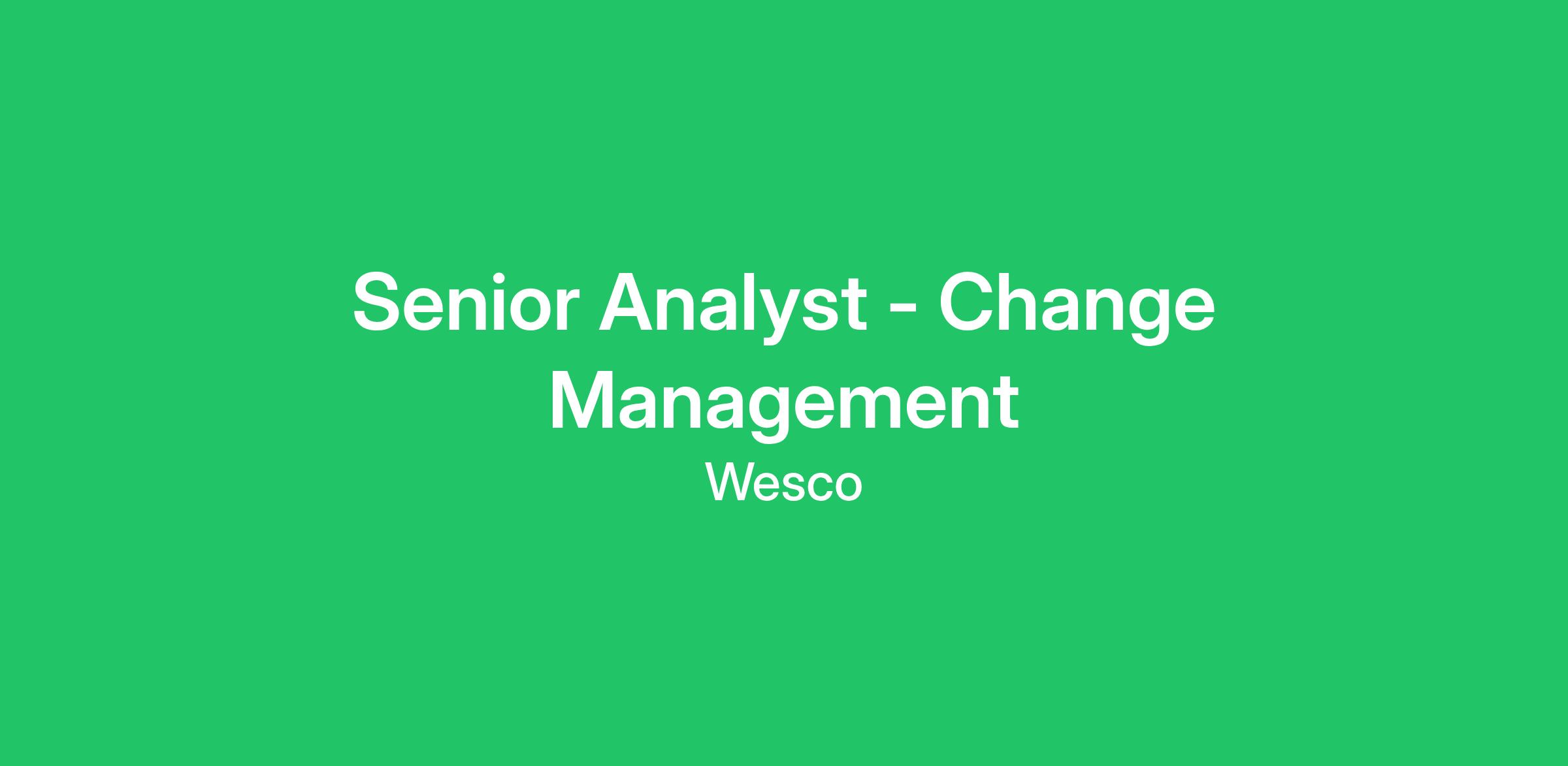 DescriptionAs Senior Analyst - Change Management, you will play a crucial role in facilitating organizational change initiatives at Wesco. You will be responsible for analyzing, designing, and implementing change management strategies to improve business processes, systems, and technology across the organization. You must possess a deep understanding of change management principles and have a proven track record of leading successful change initiatives in a large, complex organization.