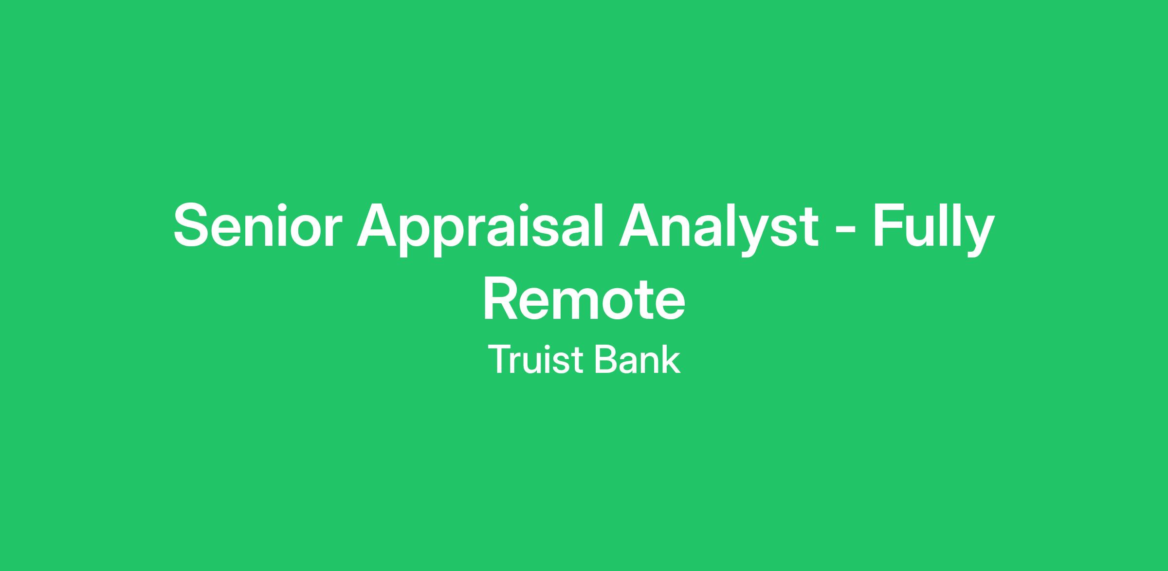 Responsible for reviewing property valuations to ensure compliance Federal/State law and Truist risk policy to ensure that loans secured with real estate are protected with adequate collateral value.