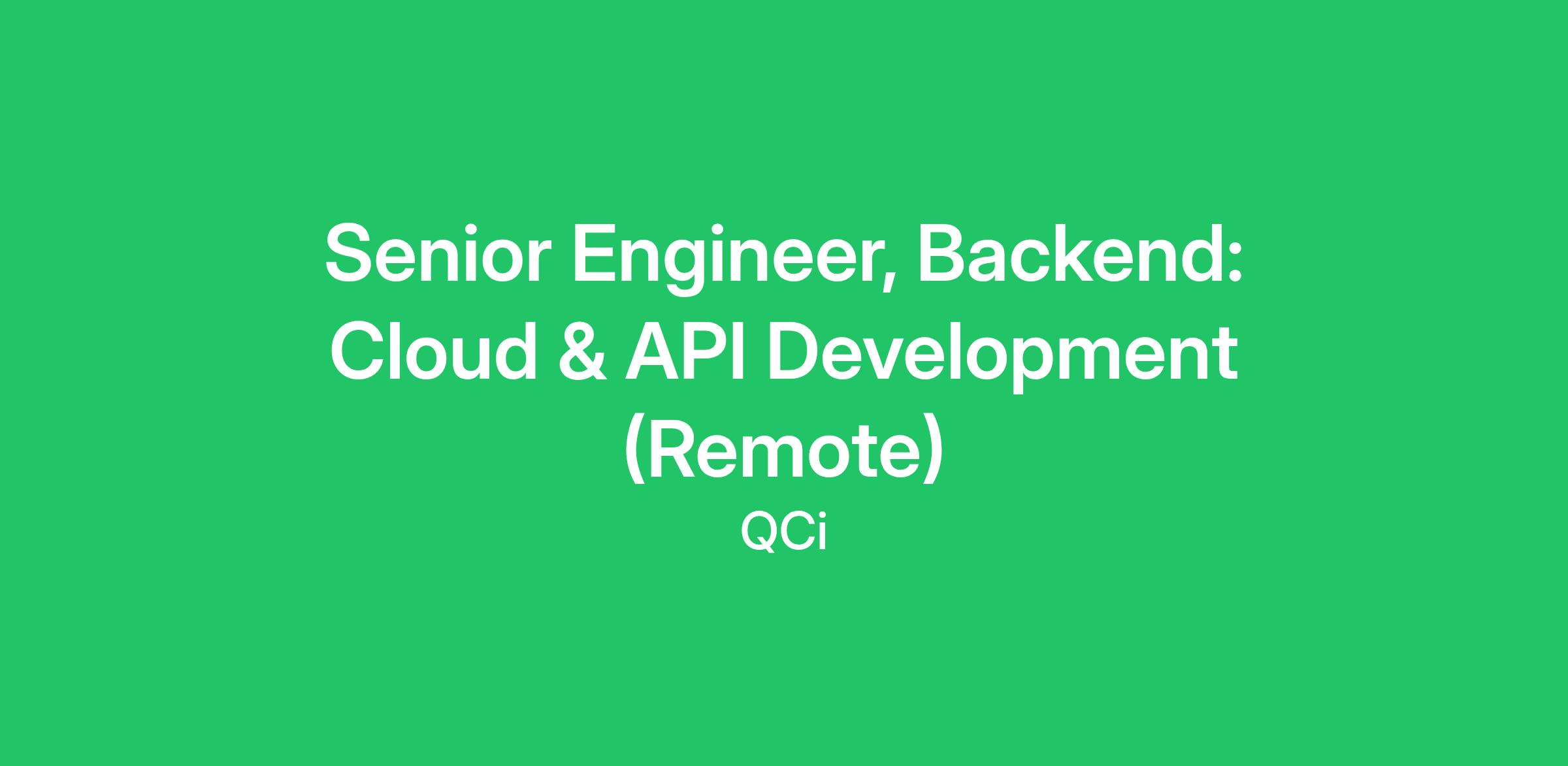 Senior Engineer, Backend: Cloud & API Development