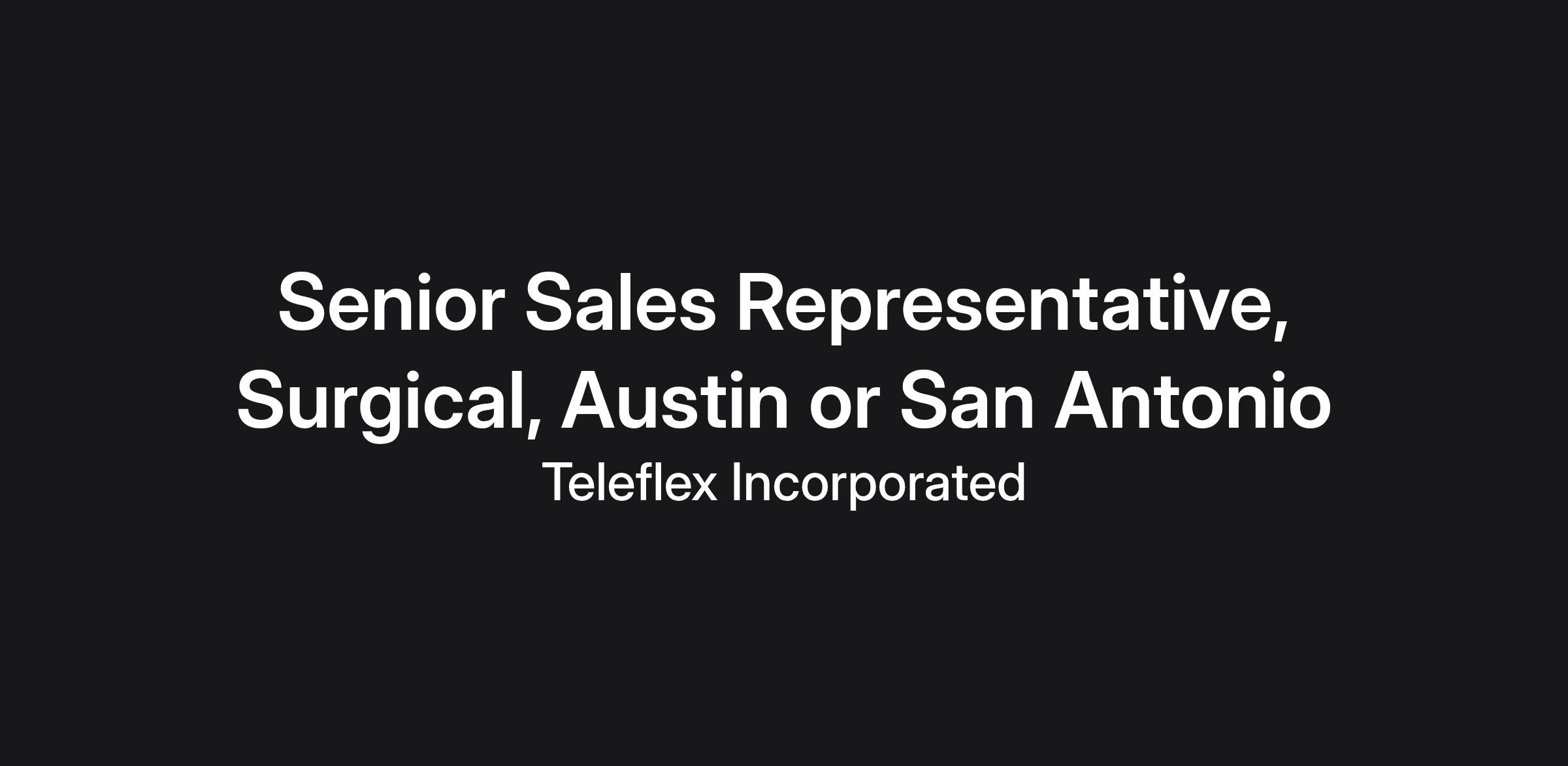 The Surgical Senior Sales Representative position is an OR based sales role with uncapped earnings and career potential. In this San Antonio or Austin, TX based position, representatives interact with Surgeons, OR Coordinators and Economic buyers to deliver the value proposition of our products and services.