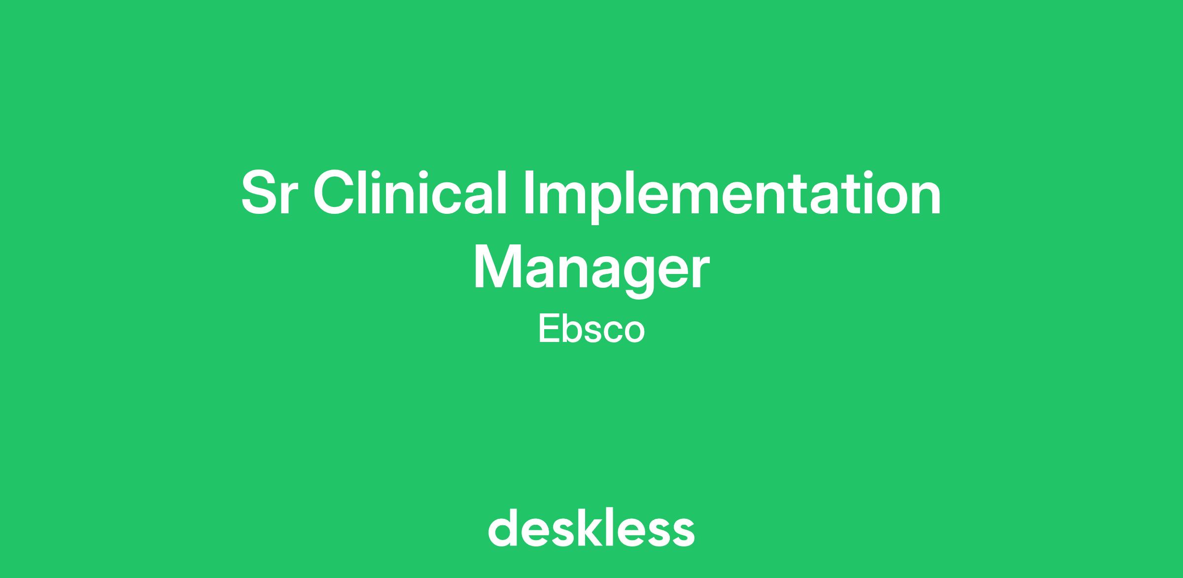 The Senior Implementation Manager is responsible for overseeing the successful implementation of EBSCO’s Clinical Decisions products in healthcare settings, which include but are not limited to, hospitals, health systems, and medical schools. This role involves working closely with healthcare providers, IT teams, and other stakeholders to ensure that the Clinical Decisions products are effectively and efficiently integrated into existing clinical workflows and processes, maximizing value, and improving outcomes. This includes integration with Electronic Health Record systems using Single Sign-on, clinical portals, HL7 Infobutton, and more.