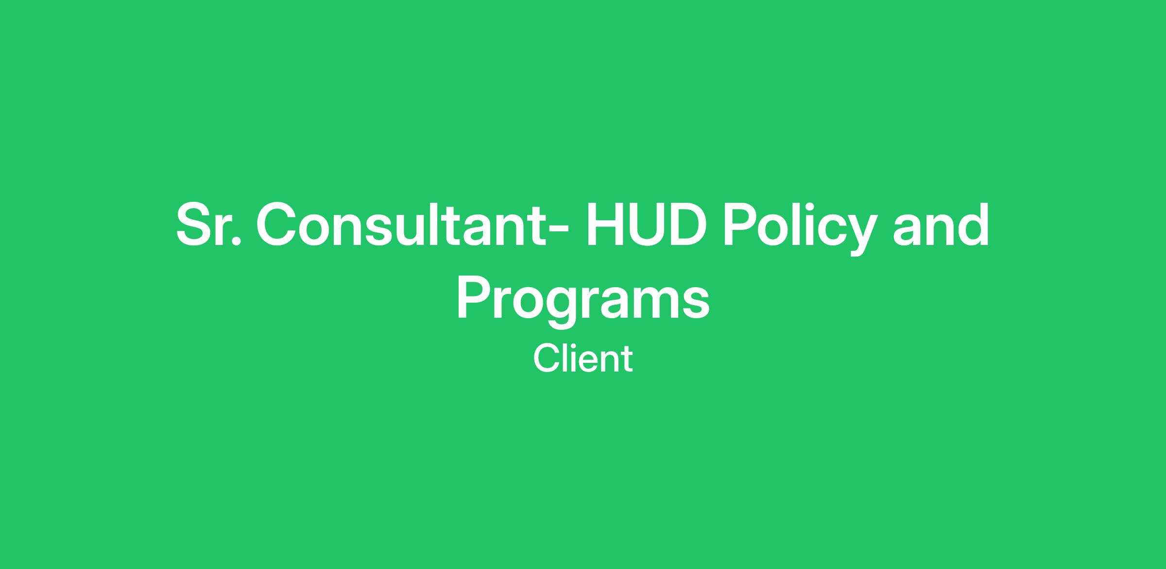 Sr. Consultant- HUD Policy and Programs