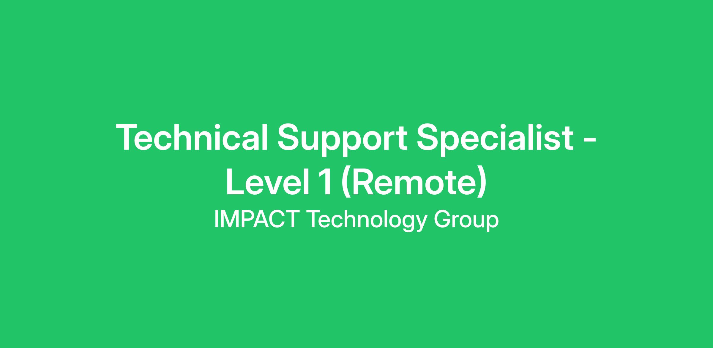 Technical Support Specialist - Level 1 (Remote)