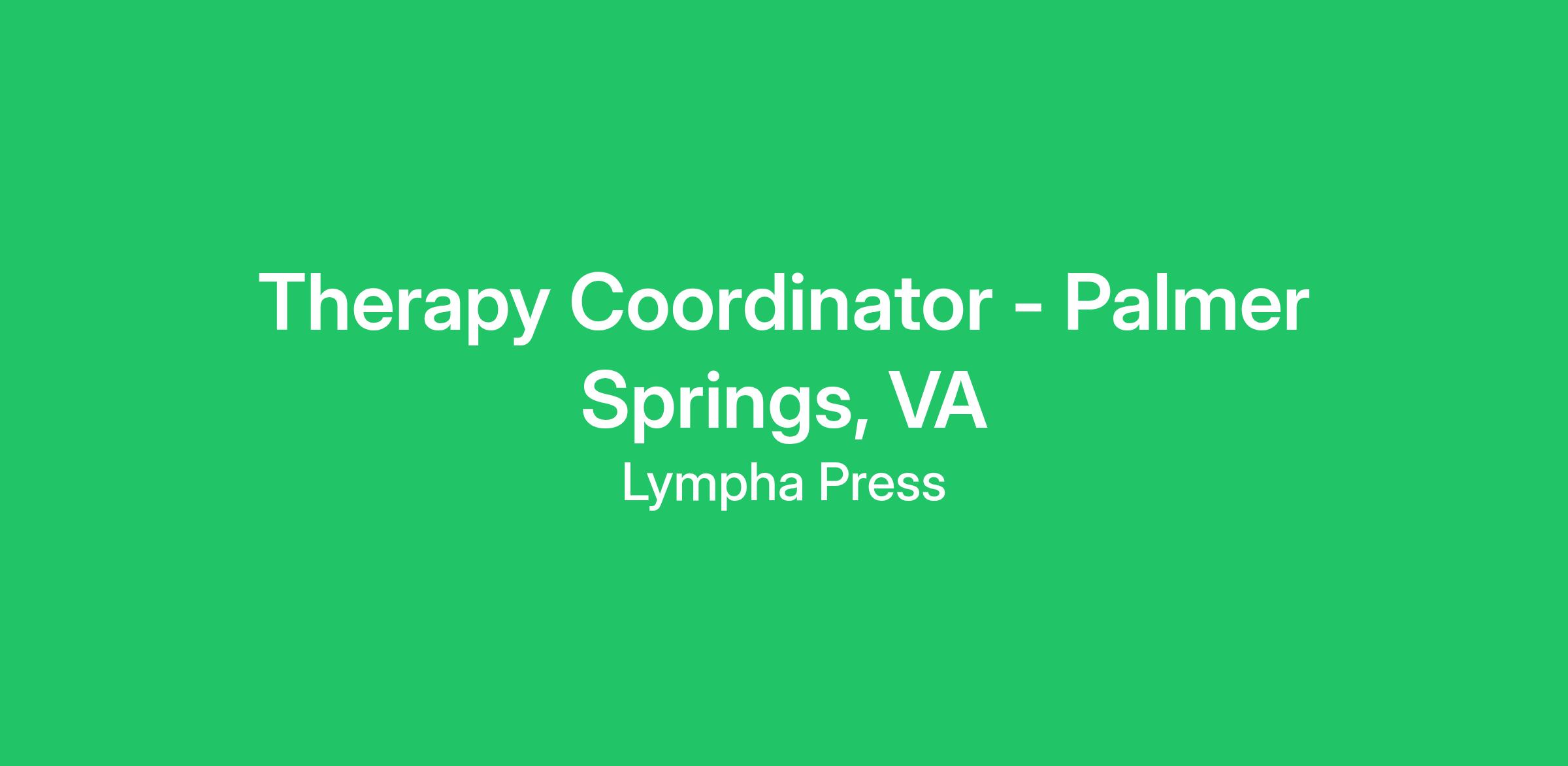ADVANCED LYMPHA PRESS THERAPY COORDINATOR – Palmer Springs, VA