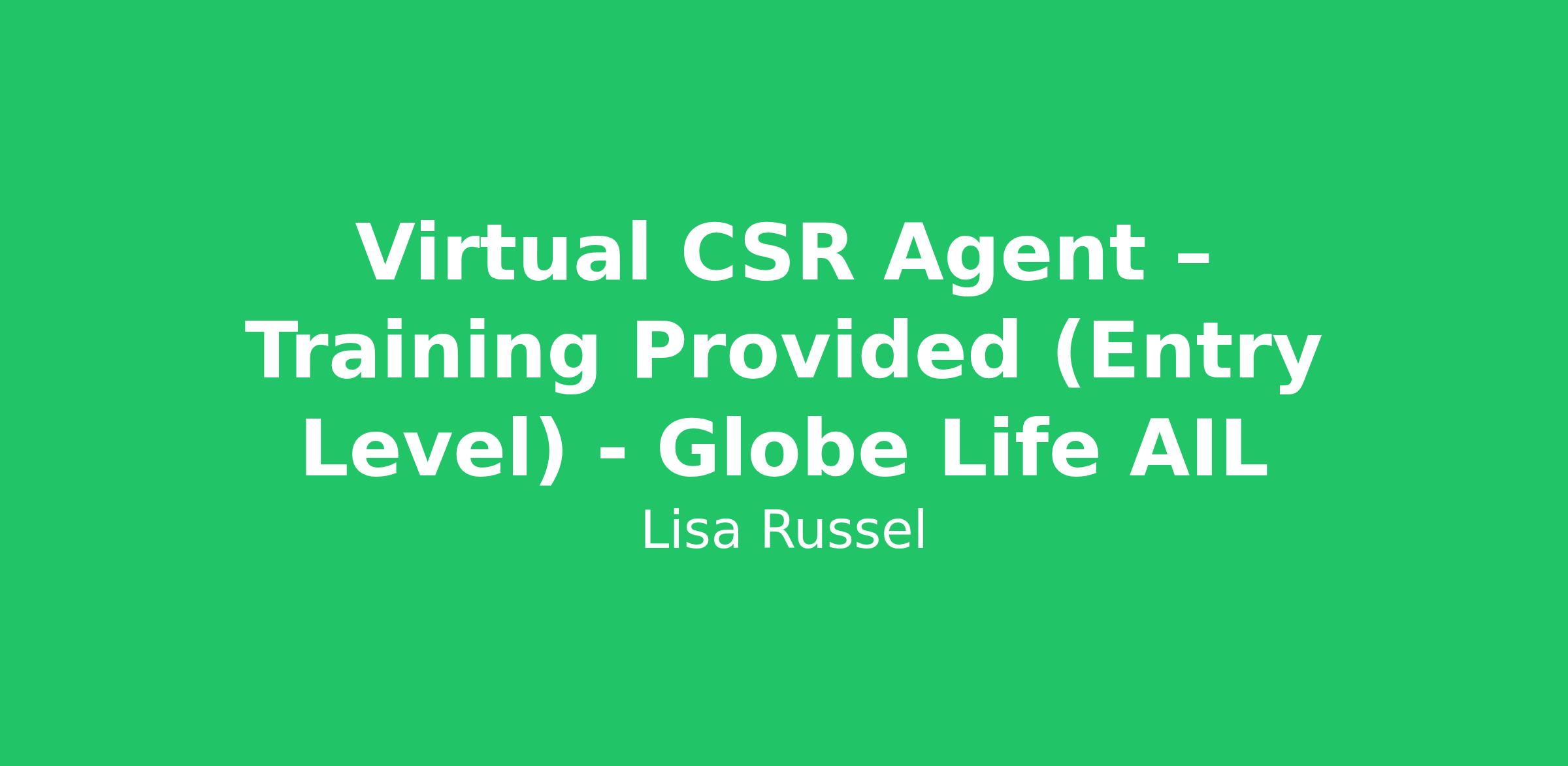 Virtual CSR Agent – Training Provided (Entry Level) - Globe Life AIL