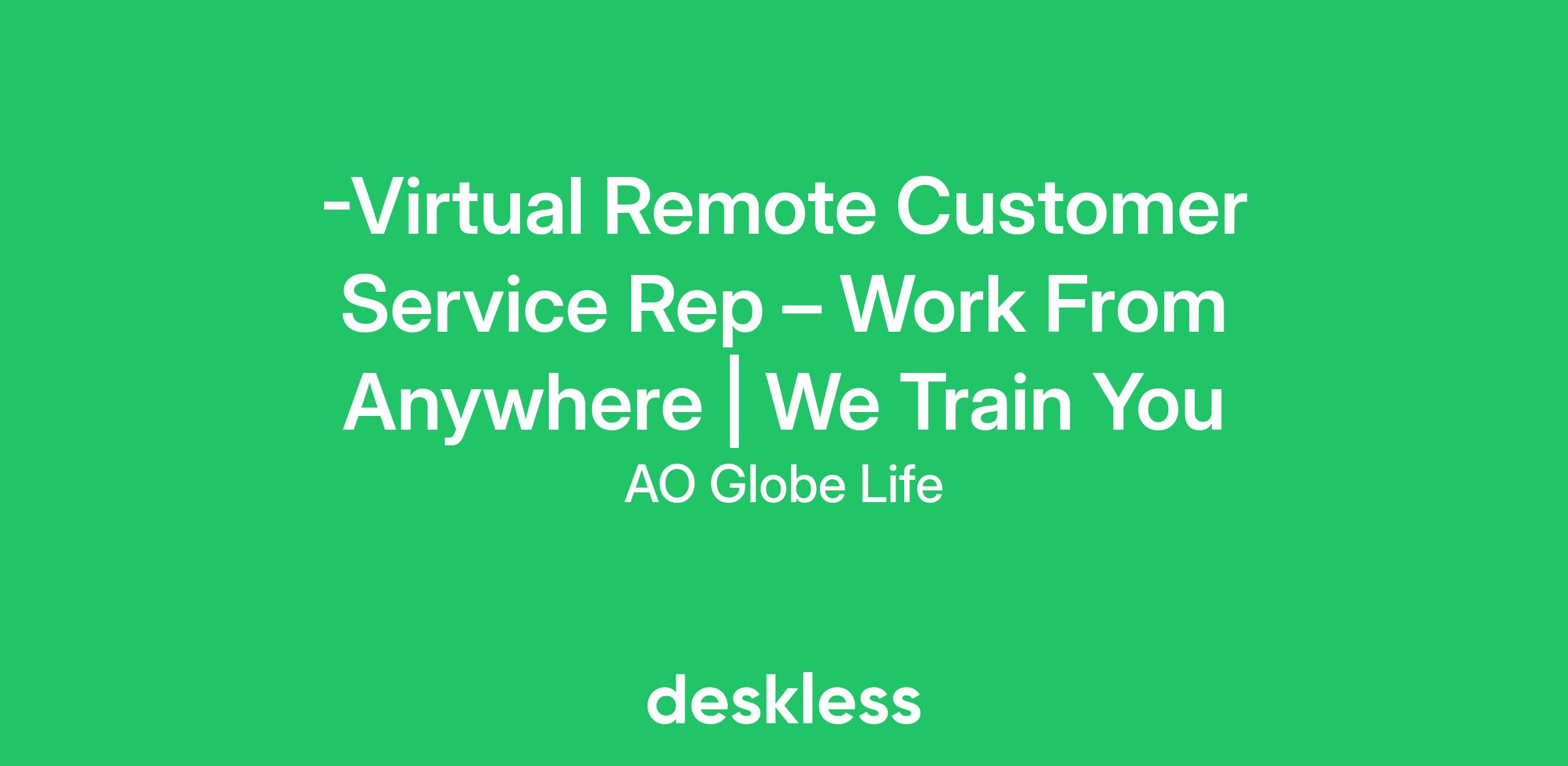 Job Title: Remote - Entry-Level Customer Service Representative (Work from Home)Company: Globe Life AO