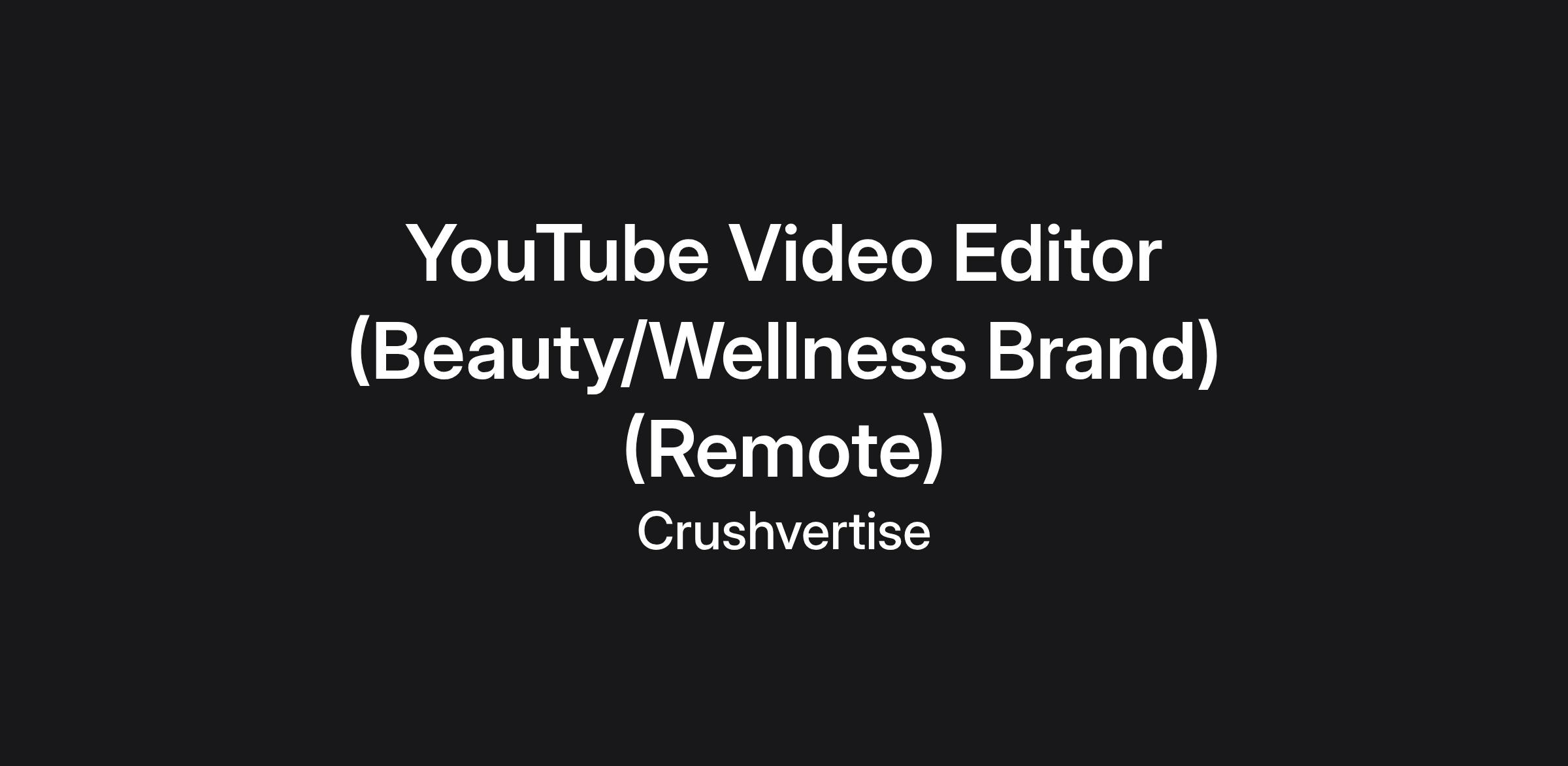 YouTube Video Editor (Beauty/Wellness Brand) (Remote)